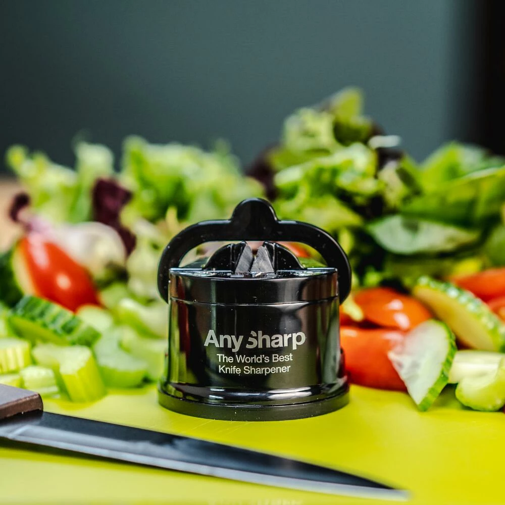 Available in your choice of chic colors, the AnySharp Editions knife sharpener rejuvenates nearly all straight and serrated blades in seconds. Called the “World’s Best Knife Sharpener,” the AnySharp features a powerful suction base for safe one-handed use and diamond-honed tungsten-carbide sharpening blades for professional-quality results. You can rely on this compact tool to extend the life of all your kitchen cutlery with a few quick draws.