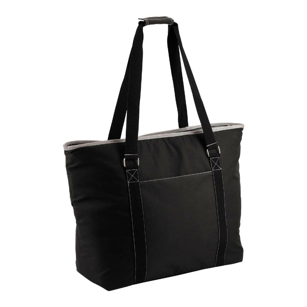 Come prepared to any celebration, outdoor sporting event or your next picnic in the park with this spacious cooler tote that holds up to 48 cans. Fully insulated with a heat-sealed water-resistant interior liner, this generously sized black tote bag is complete with an exterior zip pocket.