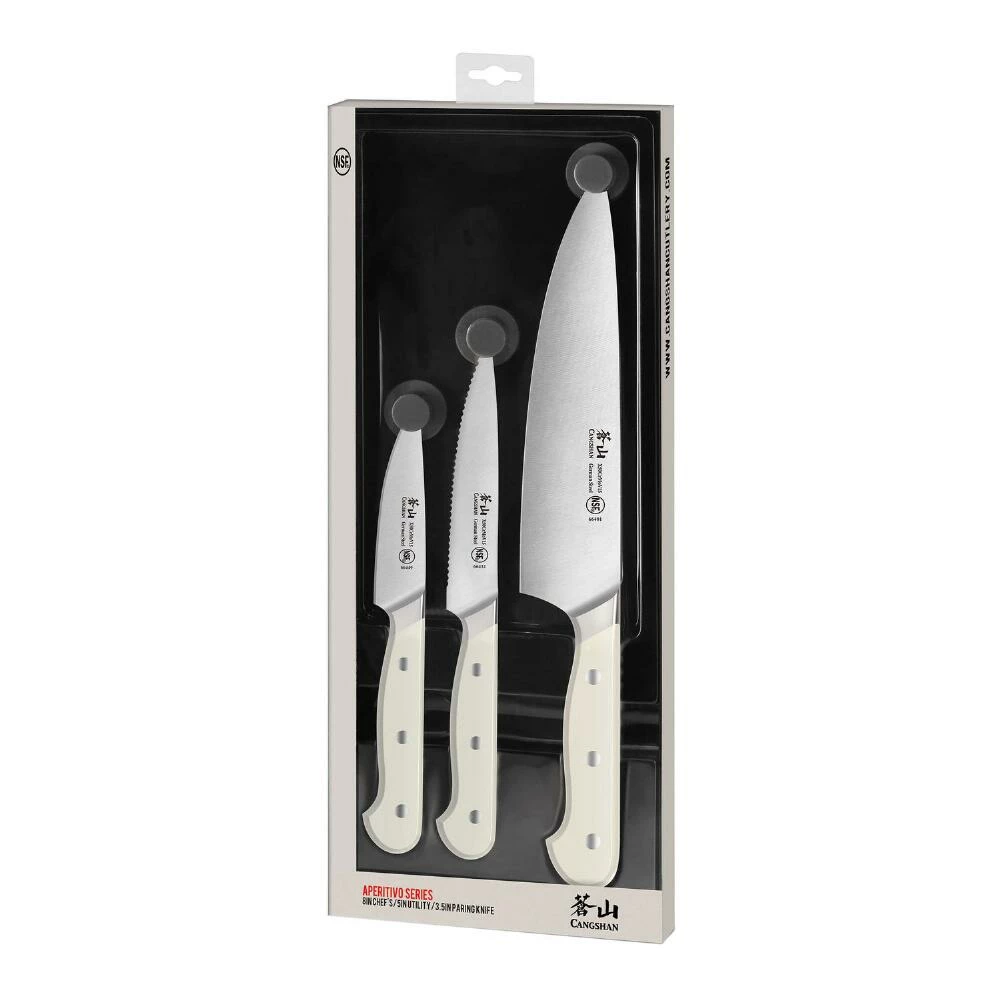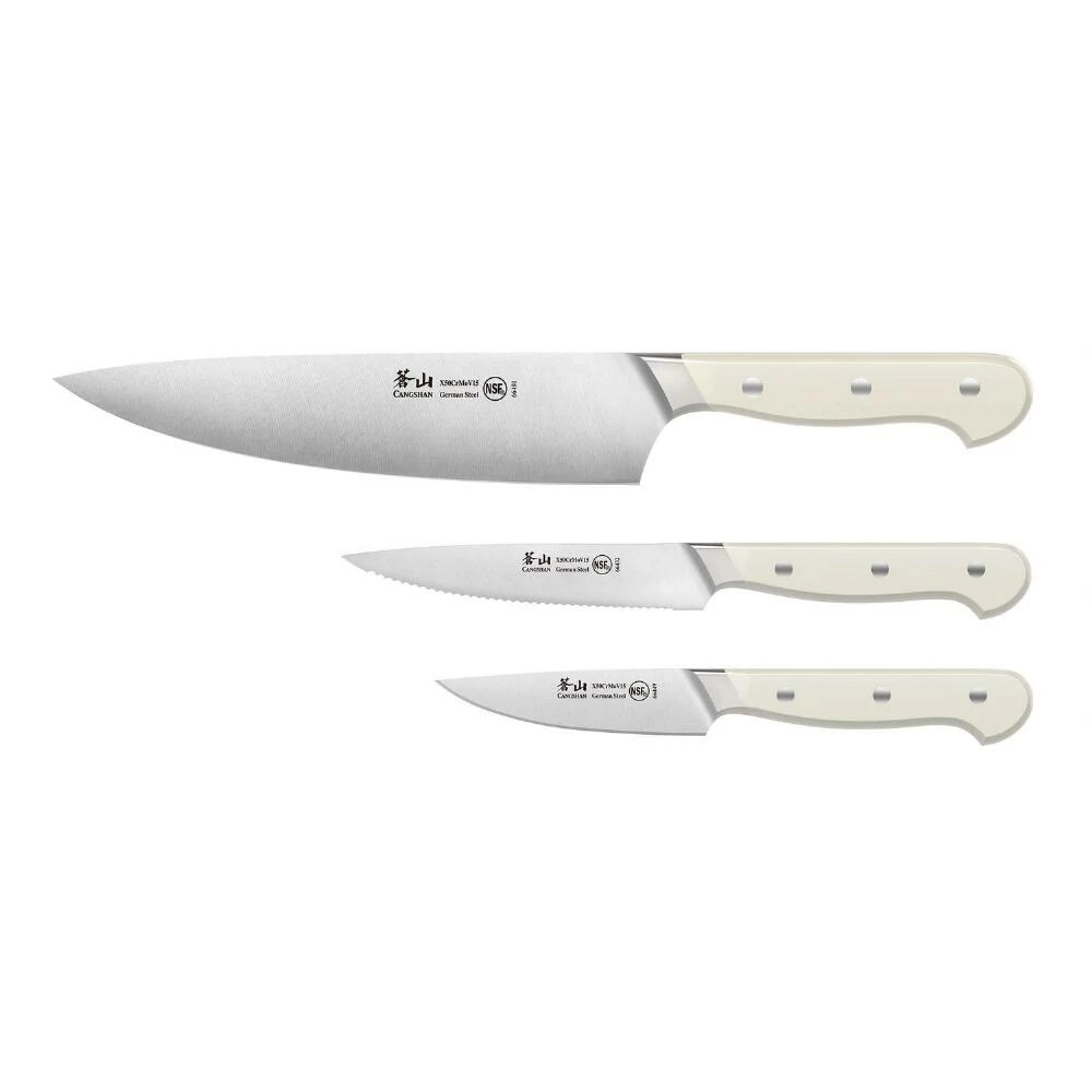 - 3-Piece set includes paring, utility and chef’s knives