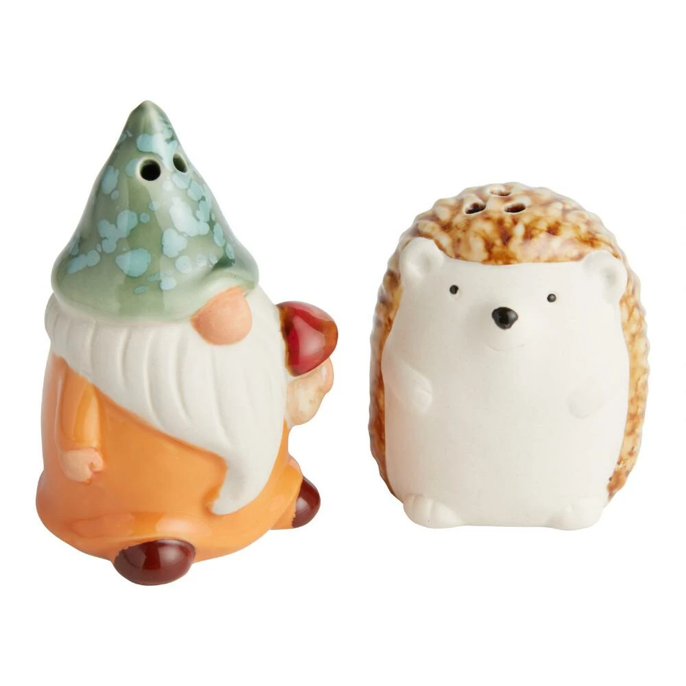 - Set includes 1 gnome salt shaker and 1 hedgehog pepper shaker