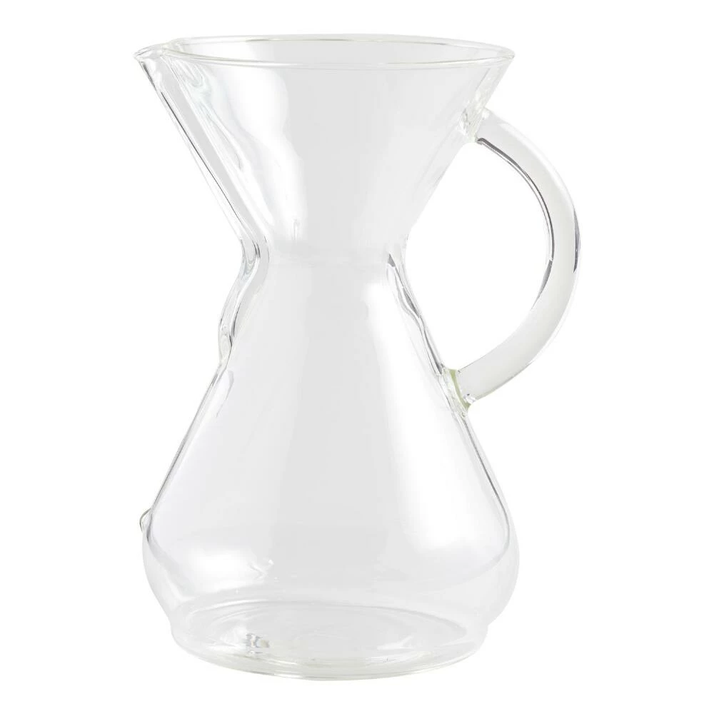 Replacing the iconic collar and tie with an ergonomic handle, this Chemex eight-cup coffeemaker is equally high-quality, just as timeless and now a little easier to use than the original version. Crafted of nonporous, heat-resistant glass, it produces a perfect cup of sediment-free, full-flavored and never-bitter coffee.