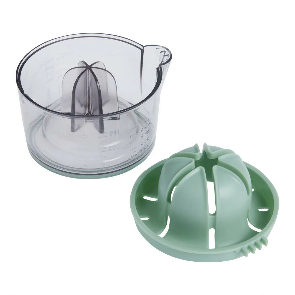 Featuring a double-sided design with a reversible reamer, our juicer strains your favorite small and large citrus fruits into a clear measuring cup with a pouring spout. One side of the reversible reamer is sized for squeezing lemons and limes and the other for juicing oranges and grapefruits. Durable and dishwasher safe, it’s perfect citrus prep tool for cooks, bakers and cocktail makers.