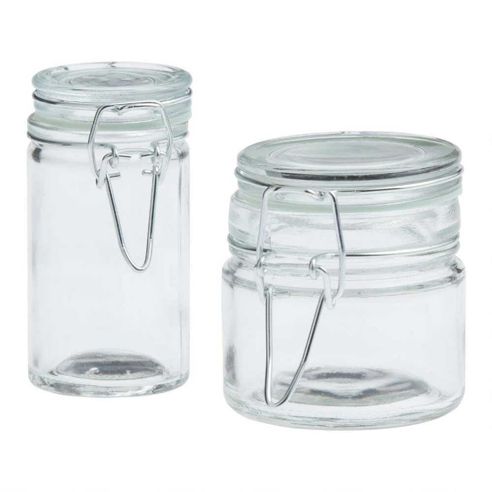 Locking tight with airtight clamp lids, our sets of glass spice jars keep your herbs and seasonings neatly organized, fresh and easily accessible. Available in sets of four petite 1.7-ounce jars or three tall 3.3-ounce jars, their coordinating sizes add a clean and clear style to the kitchen counter, spice rack or cabinet.