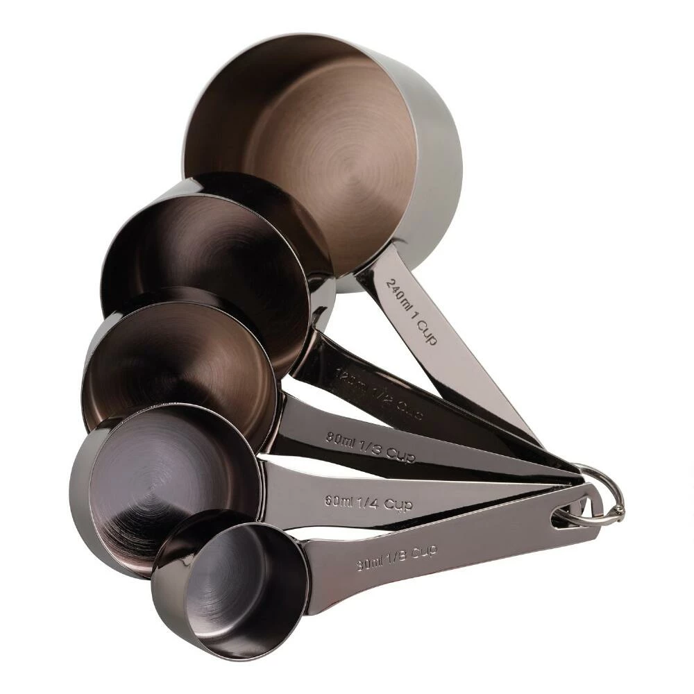 With graphite-gray electroplated finishes that add sophisticated shine, our exclusive nesting measuring cups are sleek and sturdy. This set makes a gorgeous gift for any chef or baker and looks perfect in modern kitchens.
