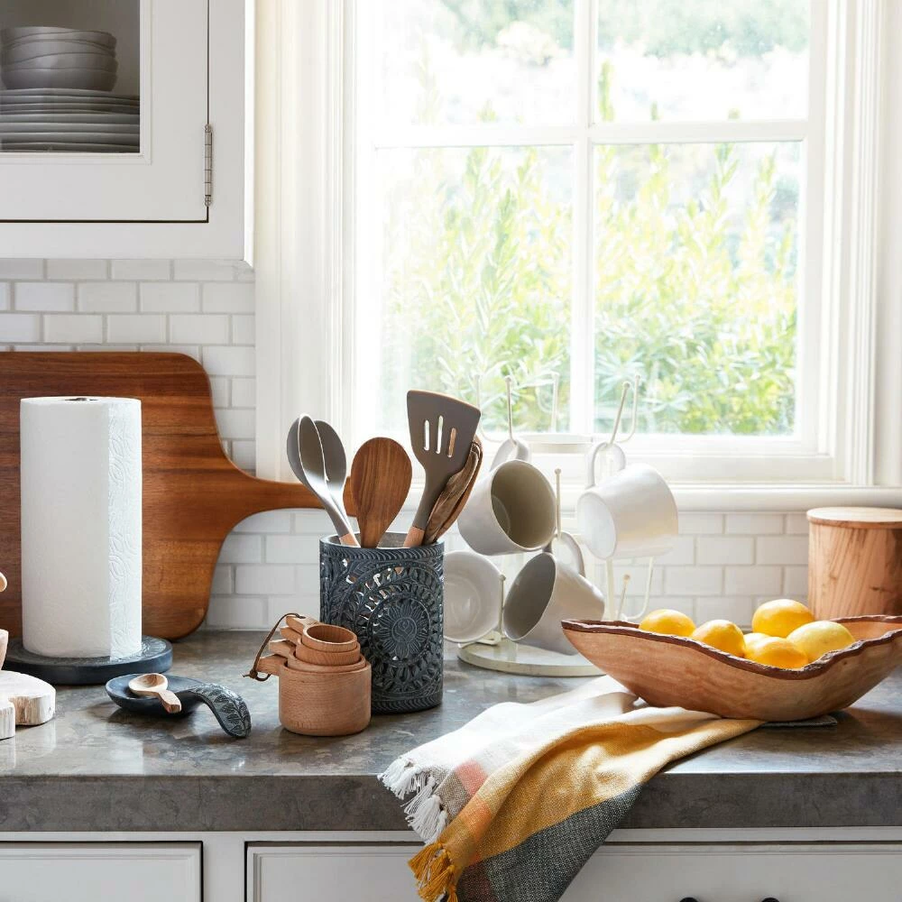 Featuring a gray heat-resistant silicone head that makes it safe for any style of cookware, our exclusive cooking spoon has a comfortable solid wood handle for easy stirring, scooping and serving. Lightweight and versatile, you’ll reach for this handy utensil time and time again.