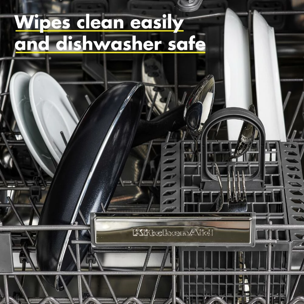 - Dishwasher safe; if hand washing, avoid using abrasive pads or steel wool; allow to cool completely before washing