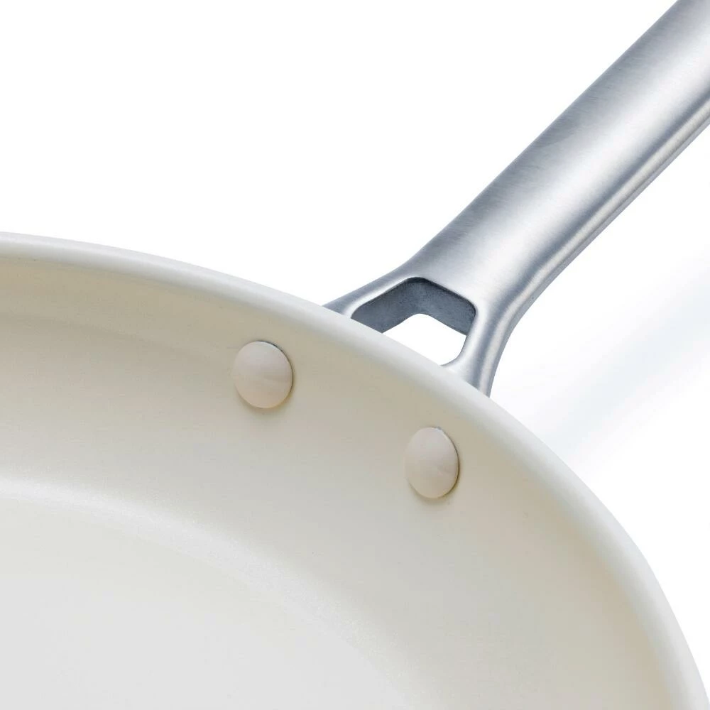 - Crafted of hard-anodized aluminum with Thermolon Minerals ceramic-nonstick finish and stainless-steel handle