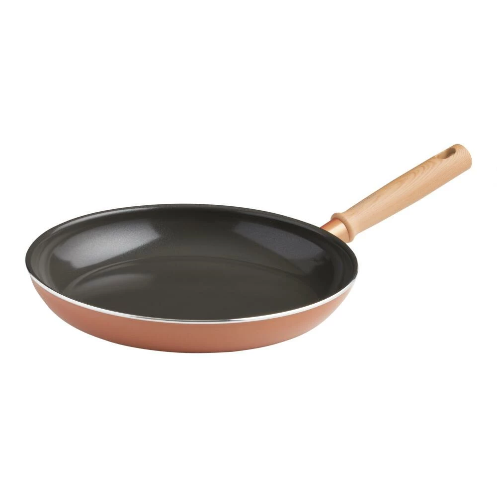 - Made of aluminum with Thermolon ceramic-nonstick coating, copper finish and Bakelite handle with woodgrain finish