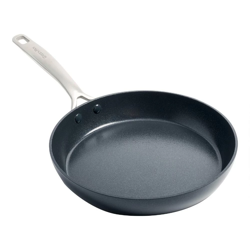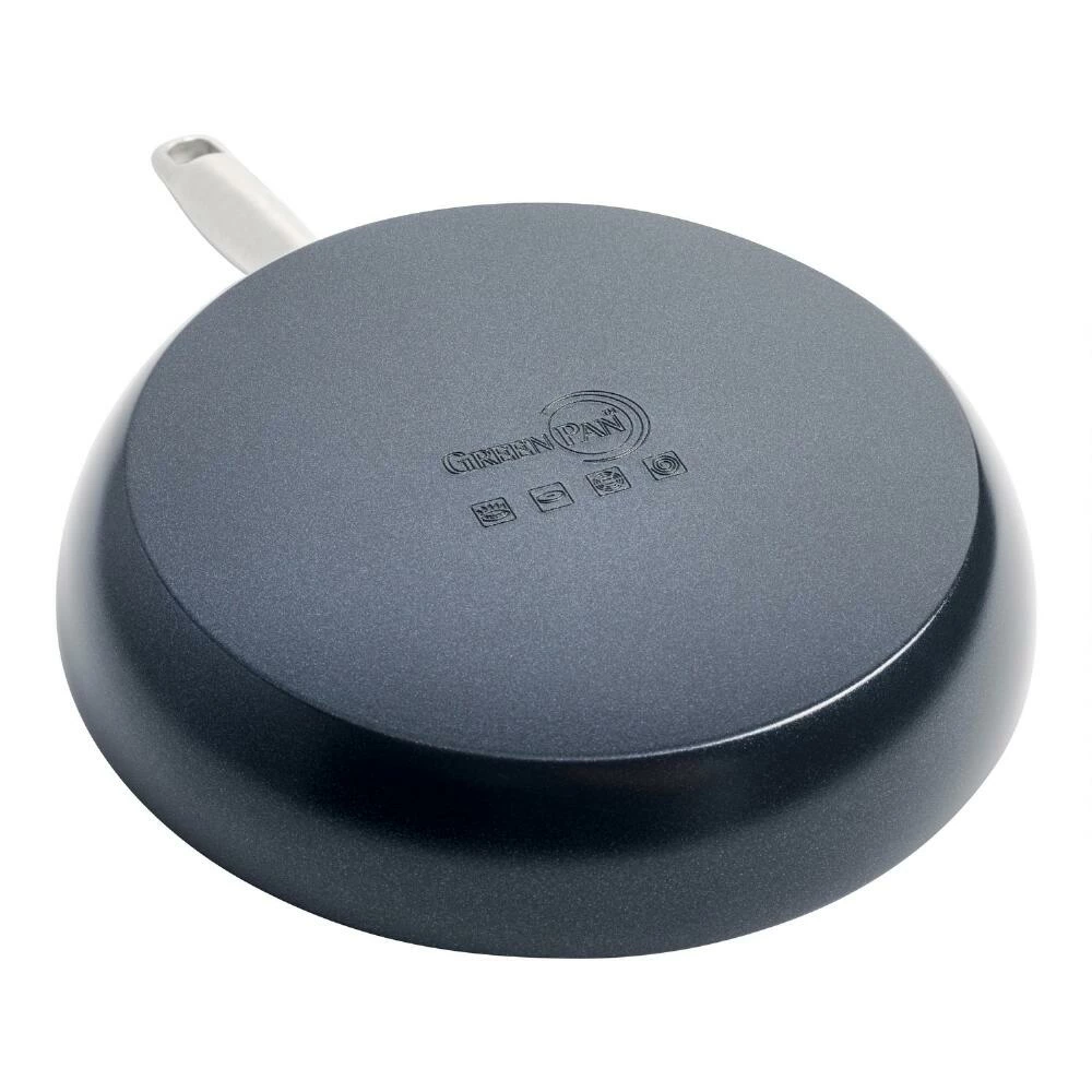 Crafted of hard-anodized aluminum with a black exterior, this small frying pan is coated with an innovative Diamond Advanced ceramic-nonstick finish. Infused with multiple diamond layers for superior scratch resistance and faster, more even heating, this 100% toxin-free ceramic coating require less oil to brown, sear and saute. Offering a larger cooking surface than comparable GreenPans, this durable eight-inch frypan is ideal for everyday use.