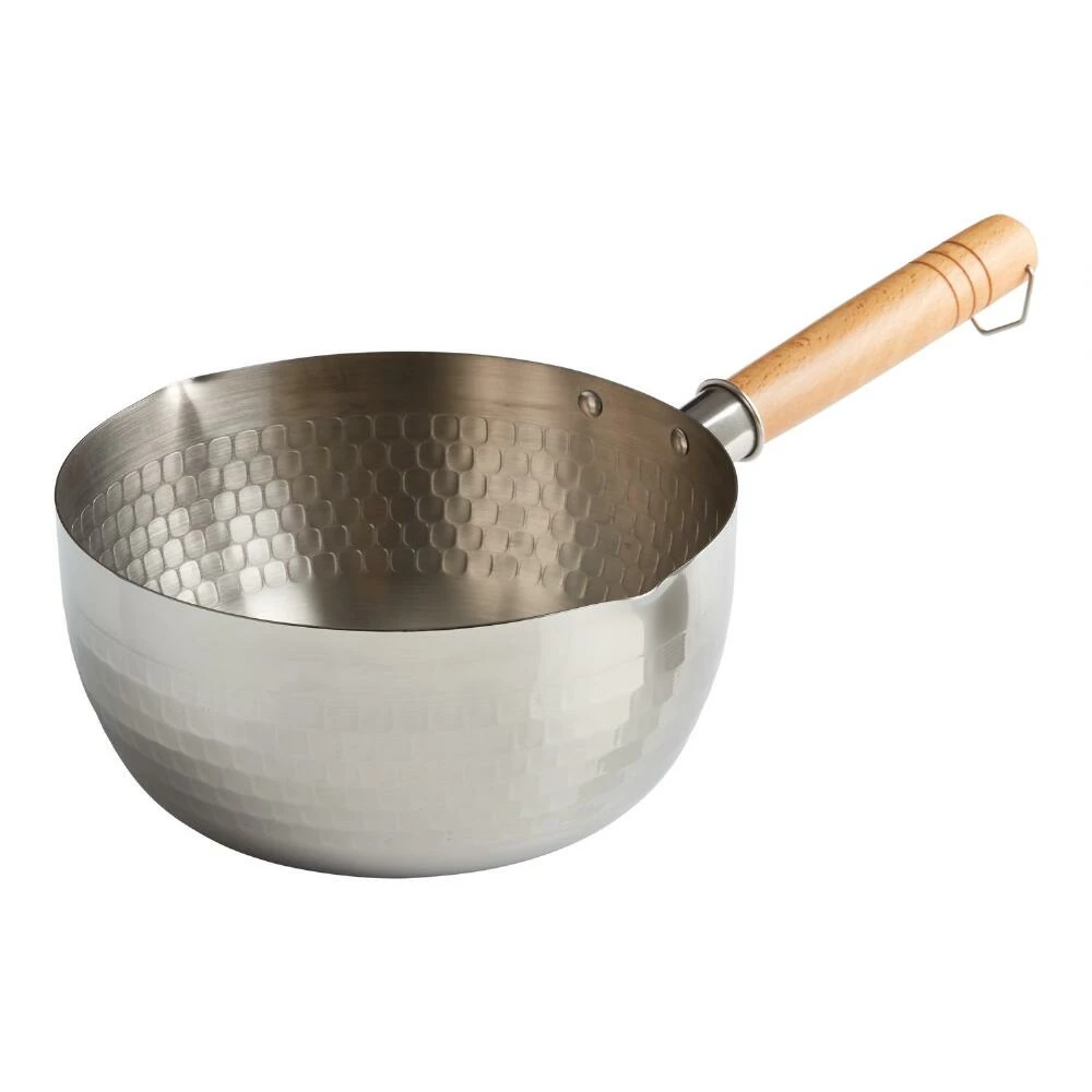 Crafted of stainless steel with a striking hammered finish, a heat-safe wooden handle and twin pouring spouts, our Asian-inspired stovetop pot is specially designed for cooking all varieties and styles of instant noodles. With a fast-heating construction that’s compatible with all cooktops, including induction ranges, this versatile pot is what you’ll reach for to make noodles soups, stews and sauces with quick, reliable efficiency.