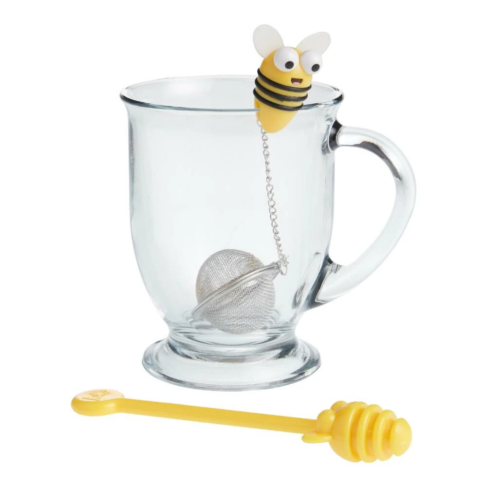 This sweet Joie gift set for tea lovers pairs an adorable bee and mesh-ball tea infuser with a yellow honey dipper. The buzzworthy bee perches on the lip of your glass or mug while the stainless-steel mesh ball is steeping your loose leaf tea, making it easy to retrieve the infuser once brewing is complete. When your black, green or herbal tea is ready you can mix in some delicious honey with the traditional dripper.