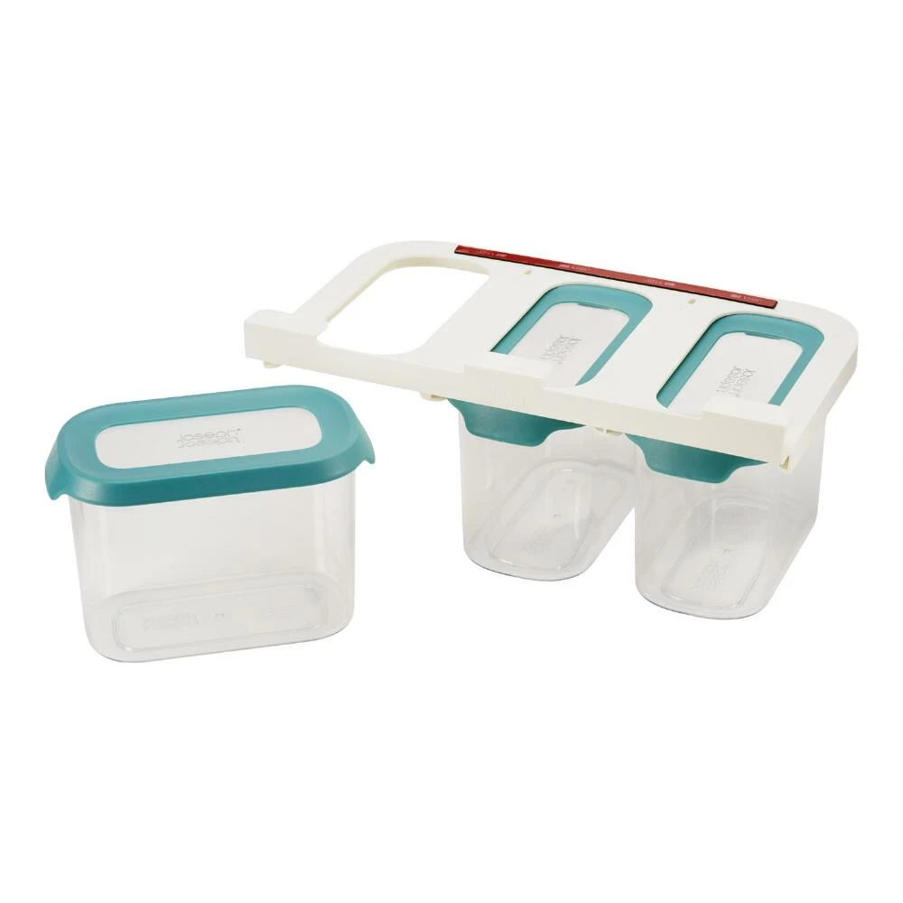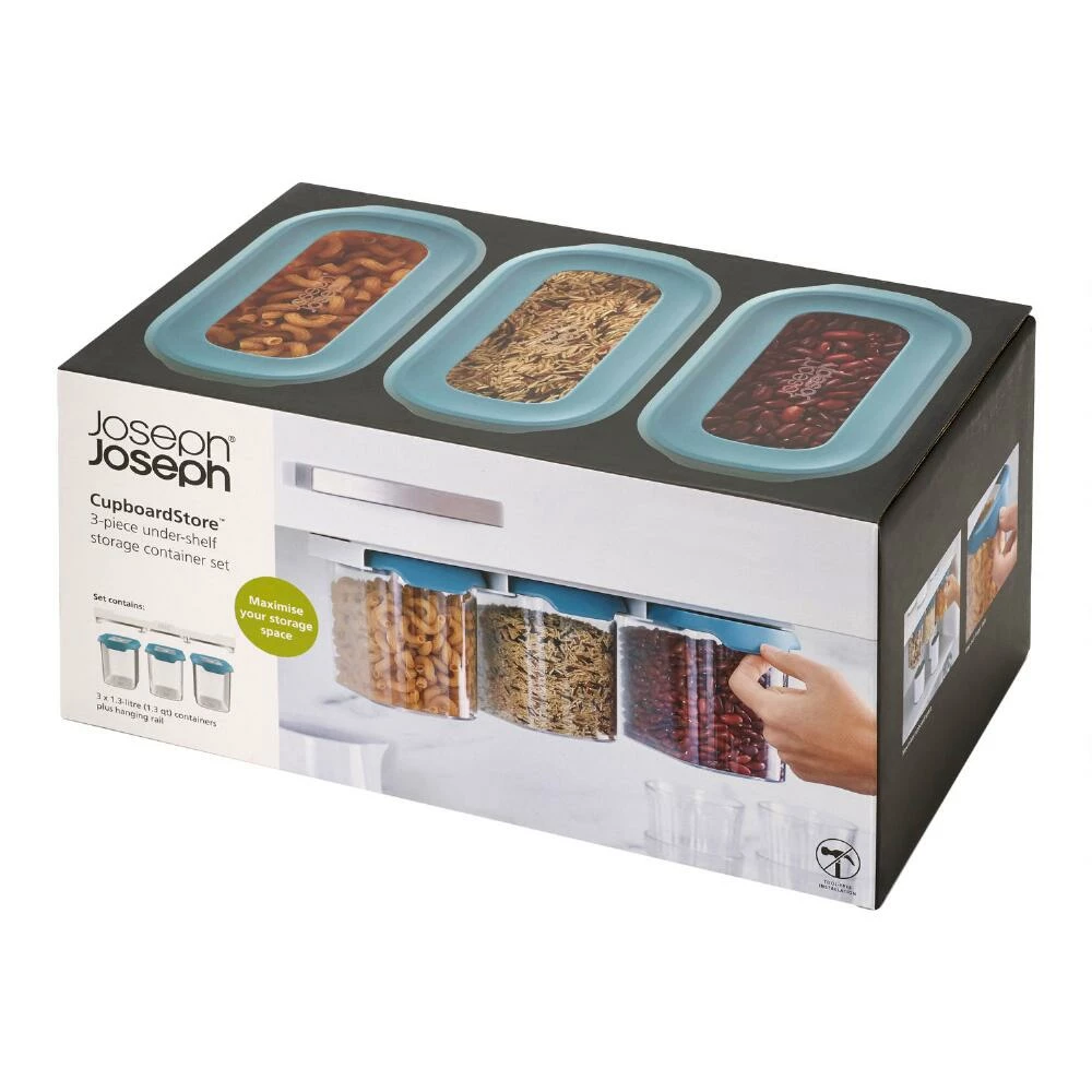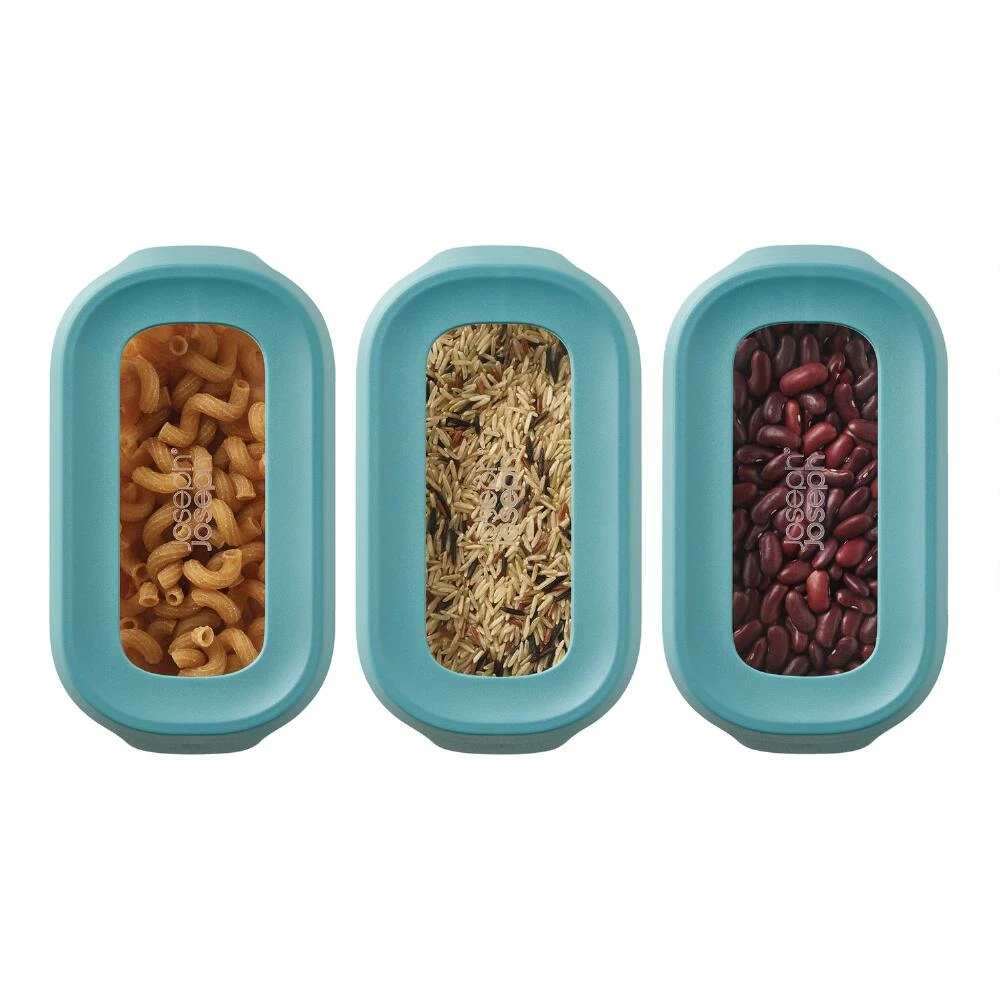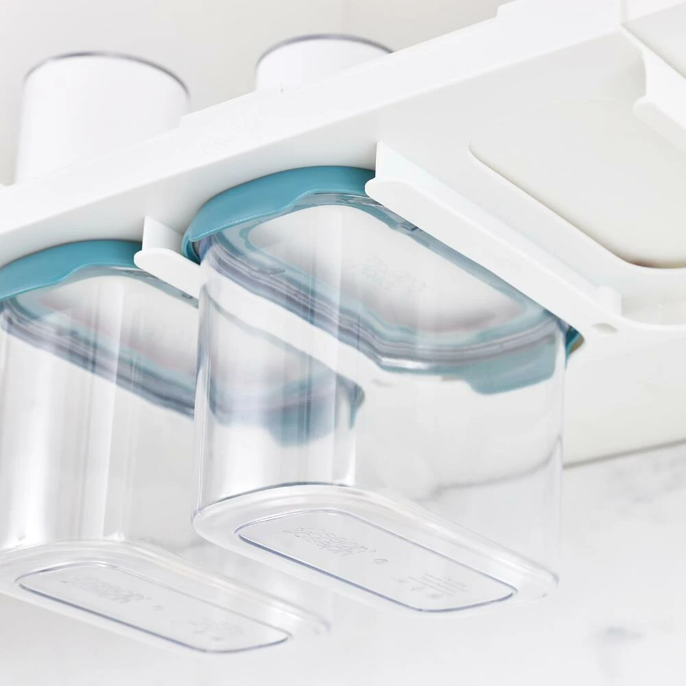 Save space with Joseph Joseph’s storage container set that preserves the essential dry foods inside or underneath a kitchen cupboard door. Attaching with extra-strong 3M VHB tape for an easy tool-free installation, the set includes three slide-out containers that store flour, tea, grains and more under airtight pull-tab lids. London-based Joseph Joseph has won numerous design awards for their innovative kitchenware since 2003.