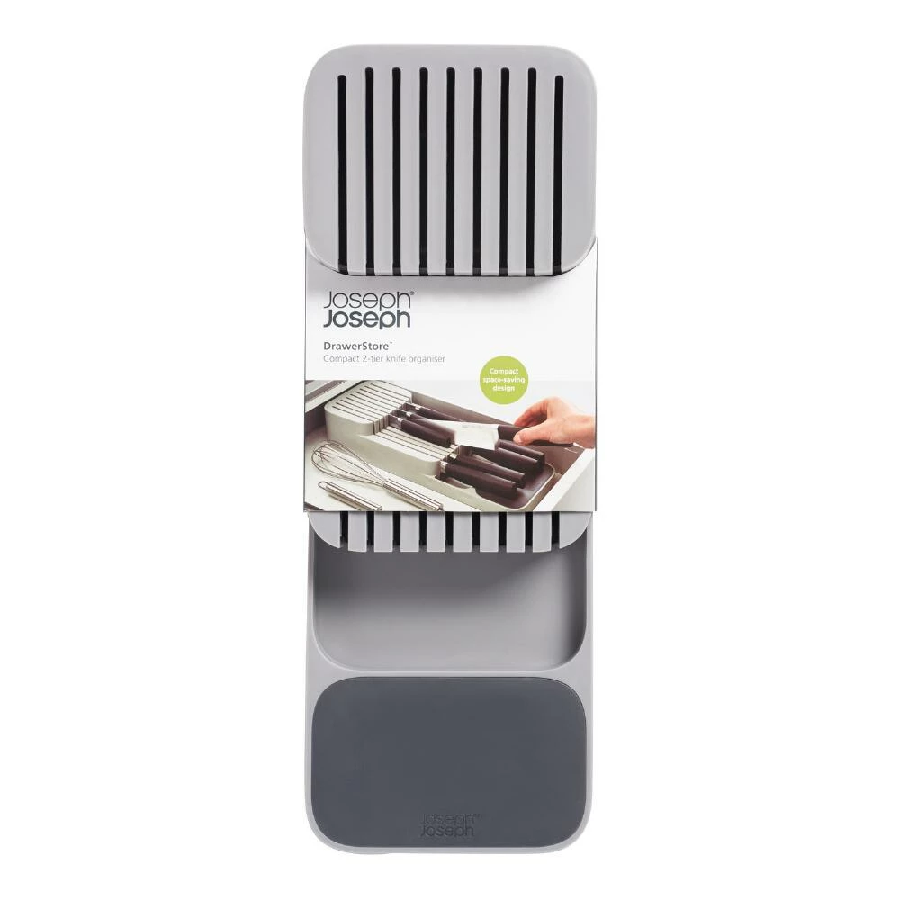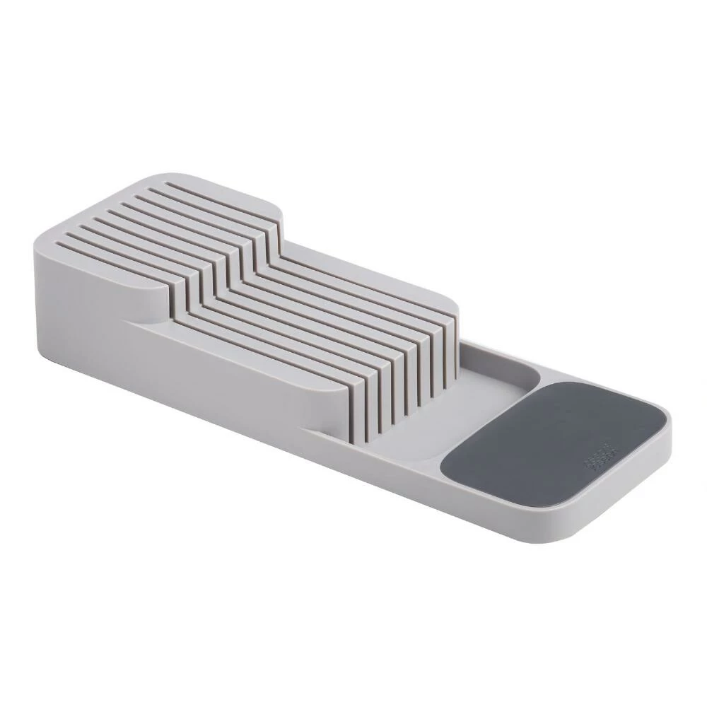 With a space-saving two-tier design that holds small blades up top and large blades on the bottom, Joseph Joseph’s knife organizer fits a lot of storage into a compact design. The sturdy, nonslip construction is perfect for the kitchen counter, but the smart design is small enough for placing in a drawer.