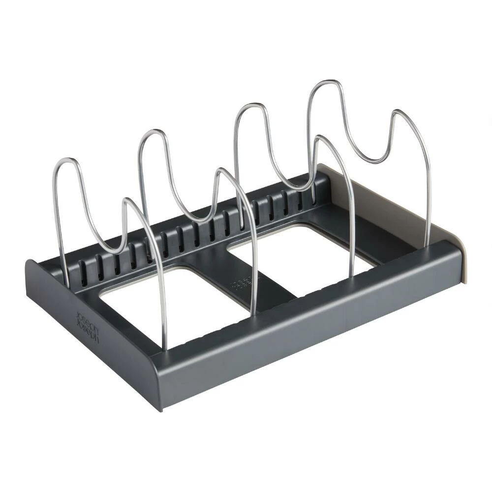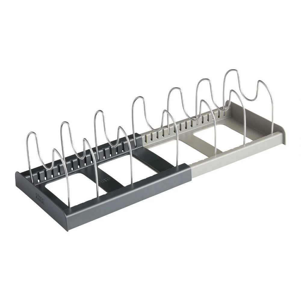 Expandable to fit drawers in a wide range of sizes, this convenient cookware rack keeps small pots, pans, lids and kitchen tools organized and easily accessible. Durably constructed, it reduces clutter with seven scratch-proof steel dividers that you can insert as needed to separate cooking and baking essentials. London-based Joseph Joseph has won numerous design awards for their innovative kitchenware since 2003.
