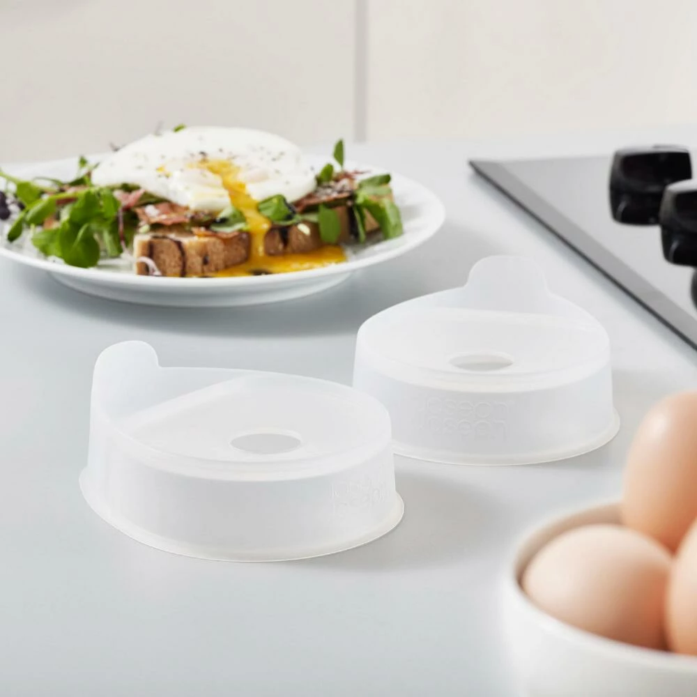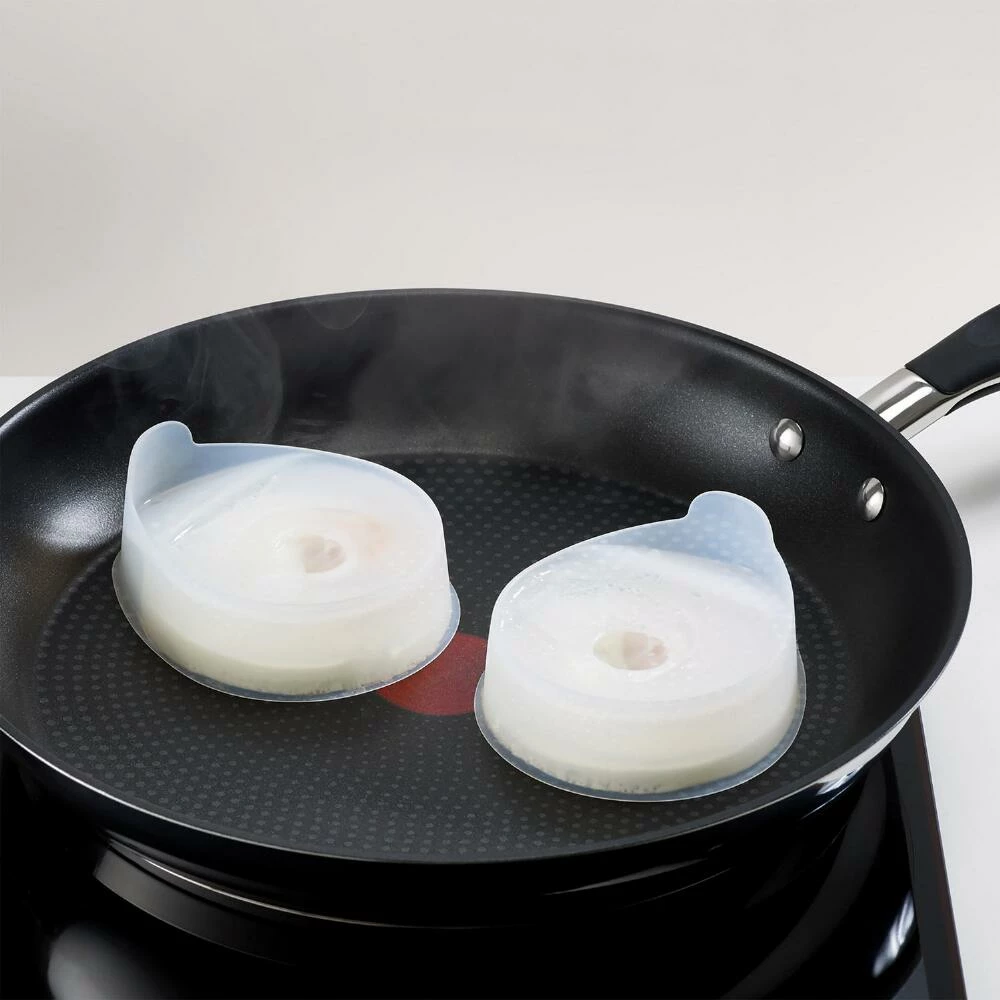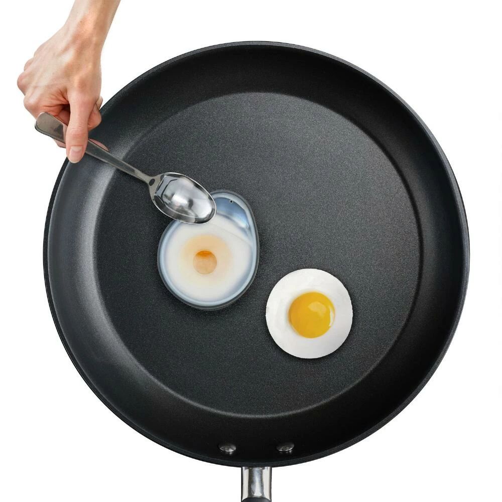 Fry eggs with just a little oil with these innovative silicone egg rings that steam-poach perfect eggs on your stovetop skillet. Using them is easy, simply oil each pod to prevent sticking, crack an egg inside and fill the reservoirs with water. Steam will cook the eggs quickly without all the extra fat. Use them to make eggs benedict, toppers for avocado toast or just enjoy their fluffy whites and gooey yolks fresh from the pan.