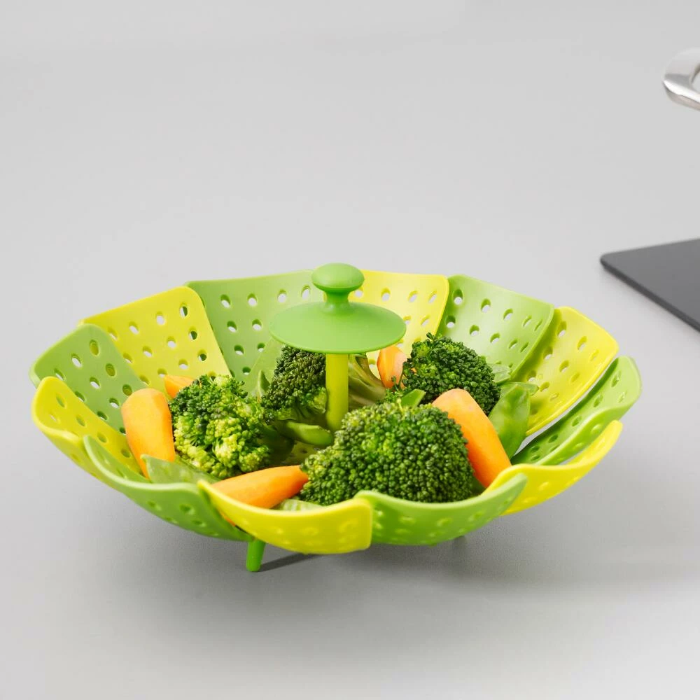 A self-adjusting steamer basket designed to fit a range of saucepan and pot sizes, Joseph Joseph’s versatile steamer insert is collapsible for easy storage in small kitchens. Heat-resistant and safe for use in nonstick cookware, it features a silicone handle with a finger guard to prevent scalding.