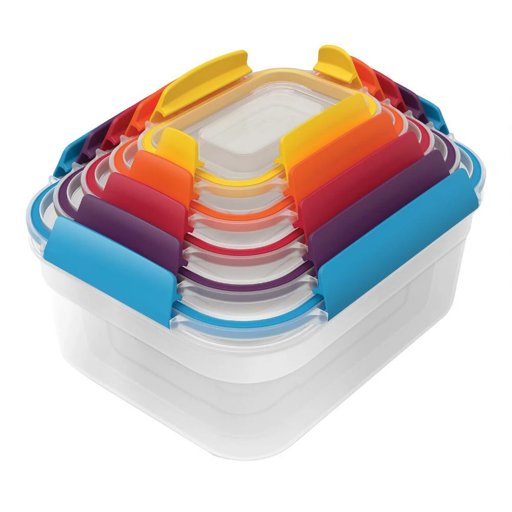 Featuring five food containers in assorted sizes with airtight lids in bright hues, these Joseph Joseph storage essentials nest for space-saving storage. A gift-ready set for small kitchens, these stackable nesting containers are microwave safe for reheating leftovers, freezer safe for long-term storage and dishwasher safe for easy cleanup. London-based Joseph Joseph has won numerous design awards for their innovative kitchenware since 2003.