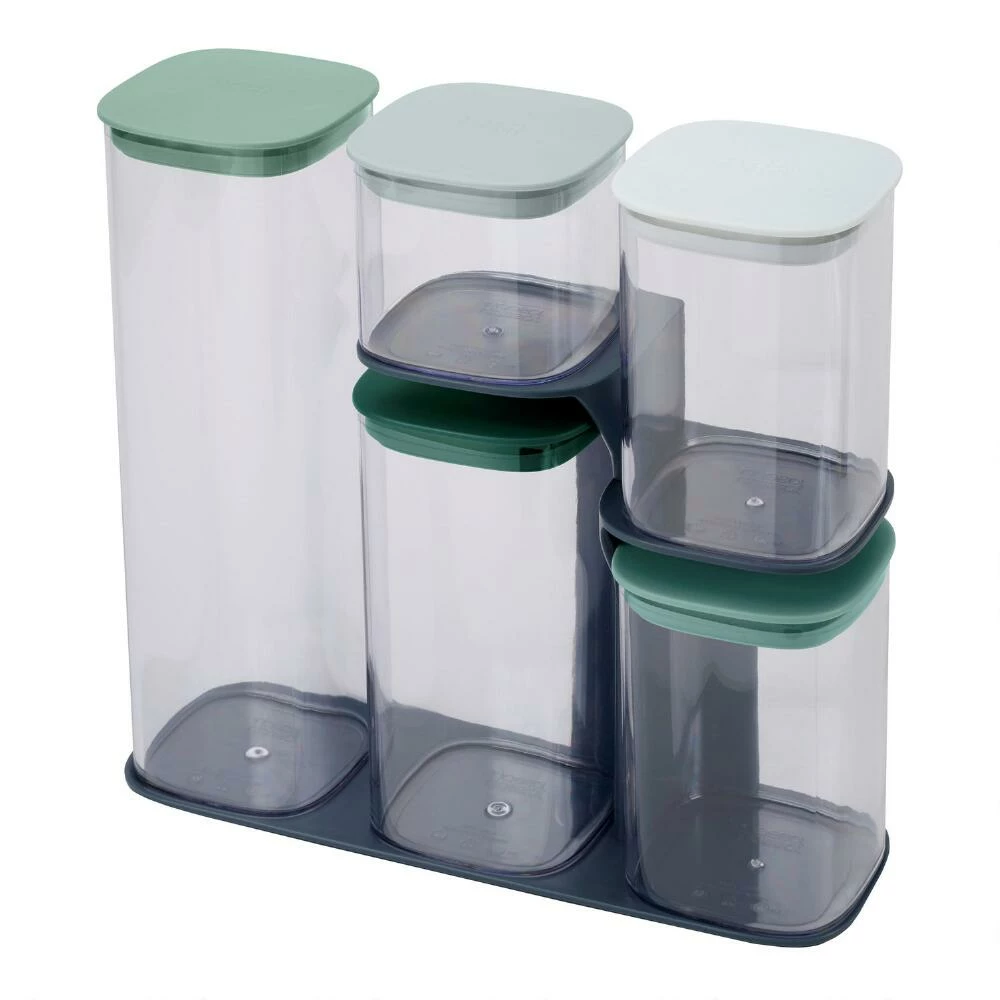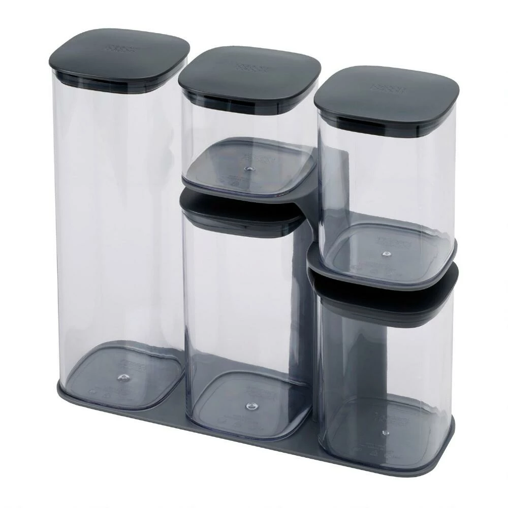 - Includes 5 containers/lids in assorted sizes and 1 storage stand