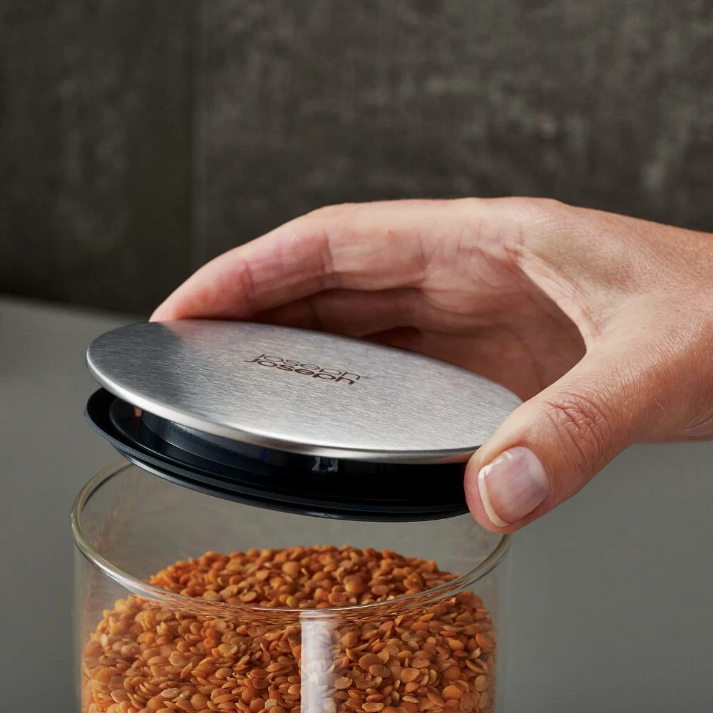 A space-saving pantry organization solution, the Podium container set is perfect for storing dry foods like pasta, grains, flour and sugar. Featuring airtight silicone lids and easy-pour corners, this five-piece food storage system is made of premium borosilicate glass so you can see what’s inside of each cylinder. Each piece tucks neatly into the included stand to maximize your kitchen countertop, shelf, or cabinet space.