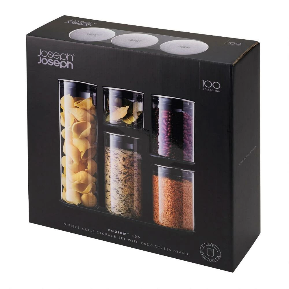 - Includes 5 containers/lids in assorted sizes and 1 storage stand