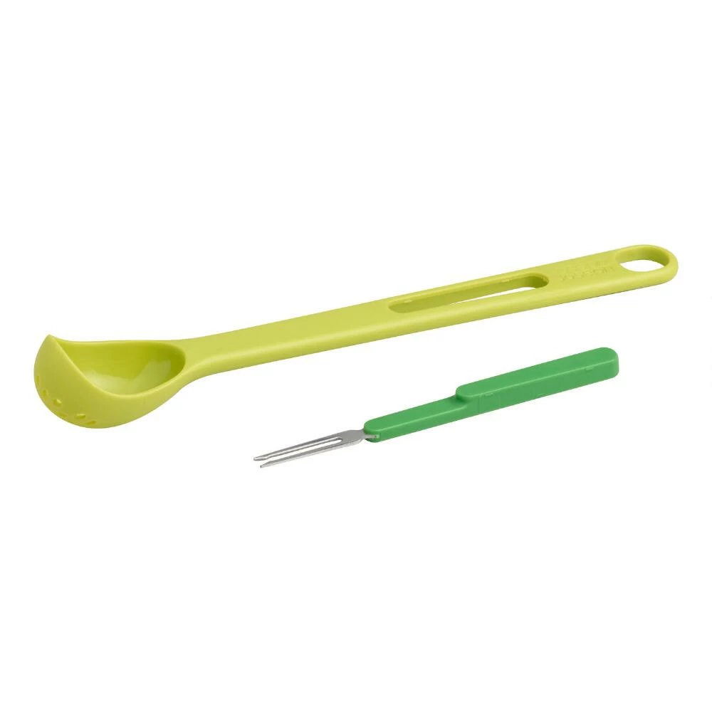 Featuring a fork that stores in the handle of an olive spoon, Joseph Joseph’s two-in-one tool is a necessity for any olive lover. The spoon reaches to the bottom of jars to scoop olives while draining oil or brine, with the fork skewering antipasti like pickles or pepperoncini for easy serving.