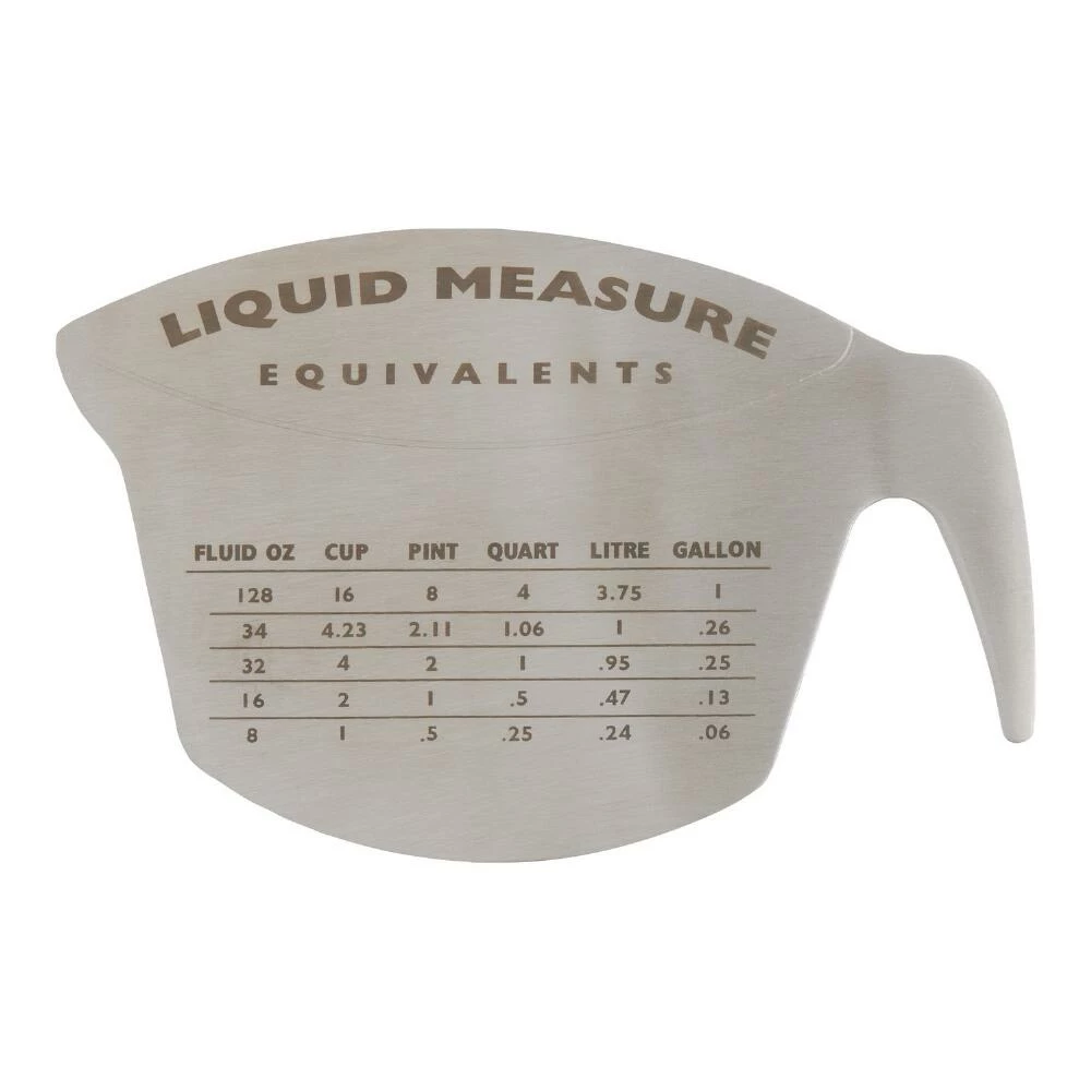Designed like a glass measuring cup, our cute kitchen magnet lists ounce, cup, pint, quart and gallon conversions in clear black text for easy reference. A time-saving tool for cooks and bakers, once attached to the stove or fridge it provides a hands-free chart to consult whenever you’re adjusting the volumes of your favorite recipes.