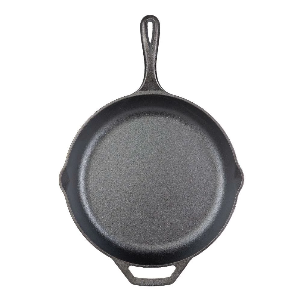 This large Lodge skillet is crafted of pre-seasoned cast iron to retain heat and promote even cooking. Part of the special Chef Collection inspired by professionals, it features spatula-friendly sloped sides, deep pour spouts, a helper handle and a long ergonomic handle for comfortable control. Free from synthetic chemicals and designed to improve with each use, Lodge has made its famous cast-iron cookware in Tennessee for more than 120 years.
