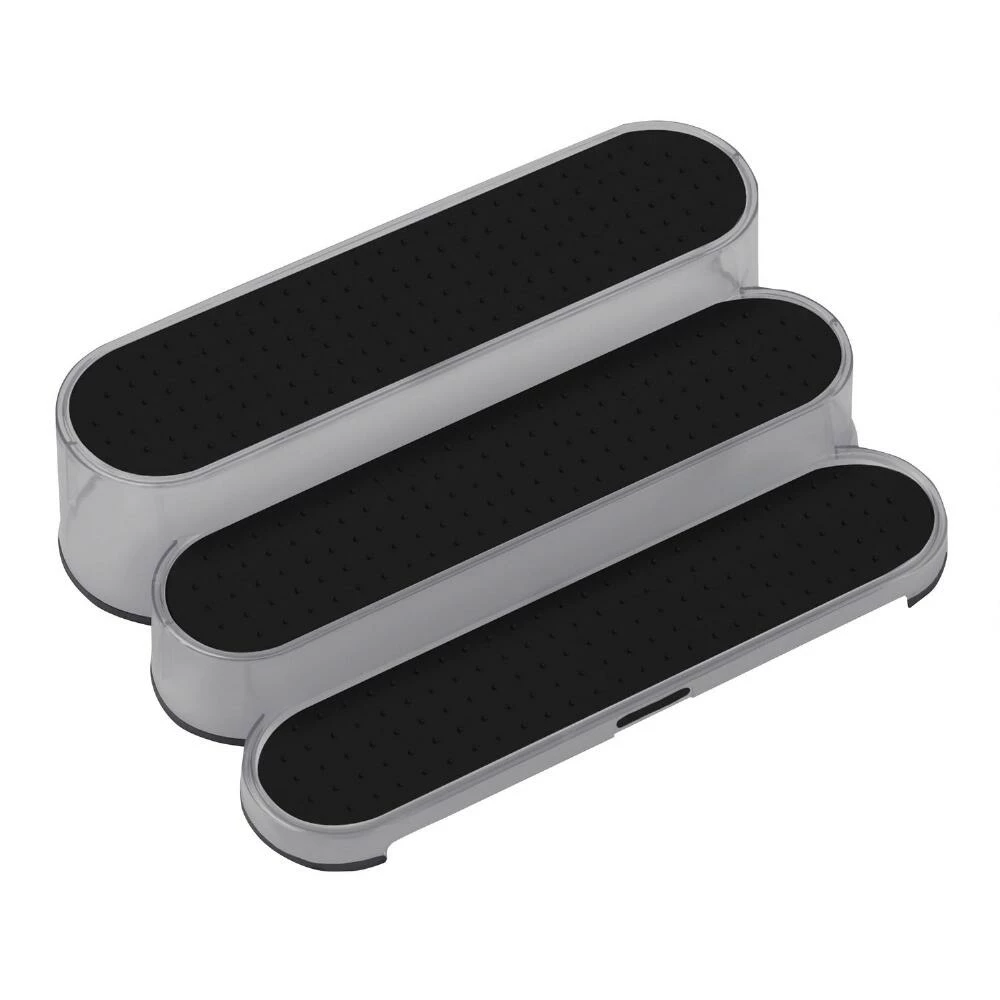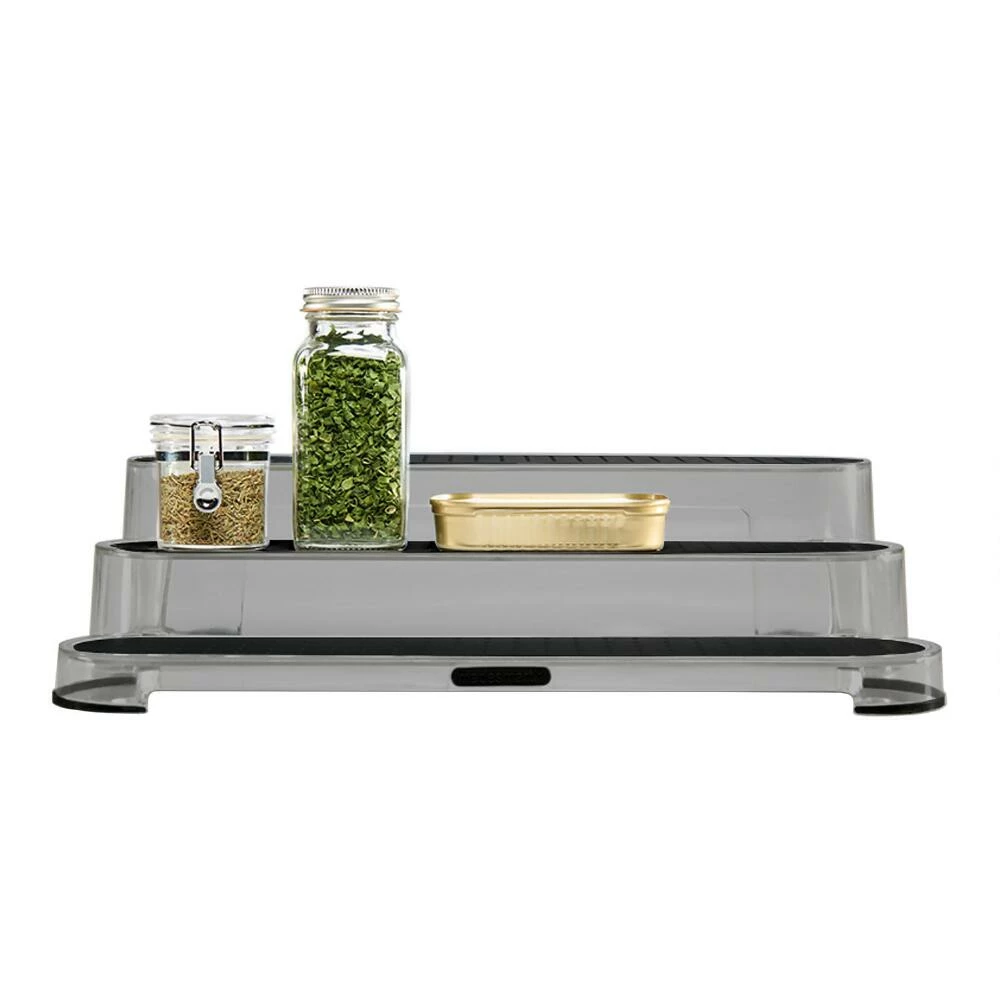 Declutter your kitchen with this nonslip countertop or shelf organizer featuring three tiers with soft-grip rubber linings in stylish carbon black. Infused with an additive to discourage mildew, its three levels make it easy to organize your spice jars or condiments and the textured linings reduce slipping and spilling. A women-owned business, madesmart® has been revolutionizing housewares with their innovative designs since their debut in 1990.