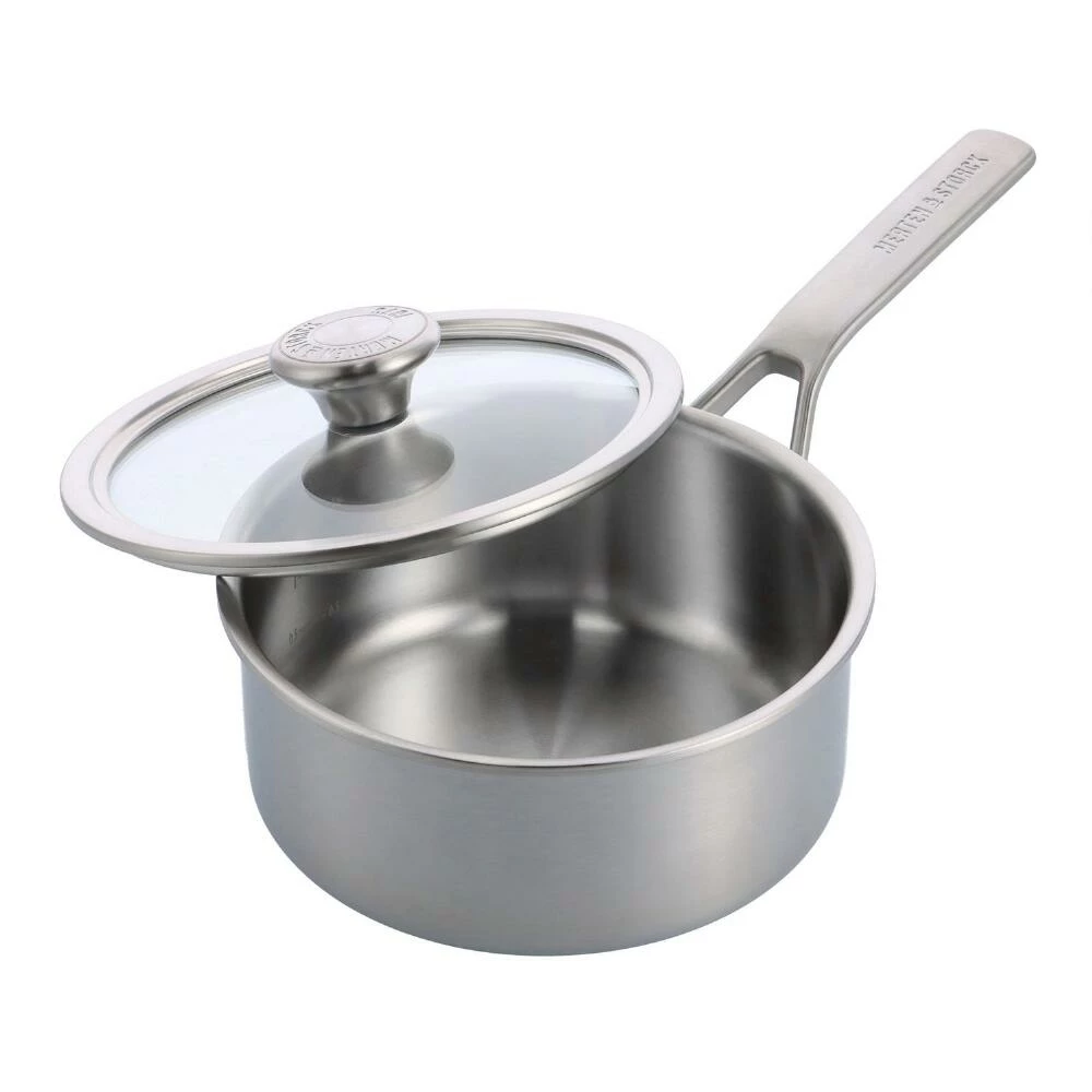Built of 3-ply stainless steel with a welded handle and glass lid, this 2-quart Merten & Storck saucepan is highly durable and incredibly versatile. Its multi-layer craftsmanship guarantees fast and even heat distribution for sauces, soups or sides on any stovetop. With a beautiful matte finish, this covered saucepan makes high-performance cooking a joy with its snag-free interior, drip-free edges and convenient capacity markings.