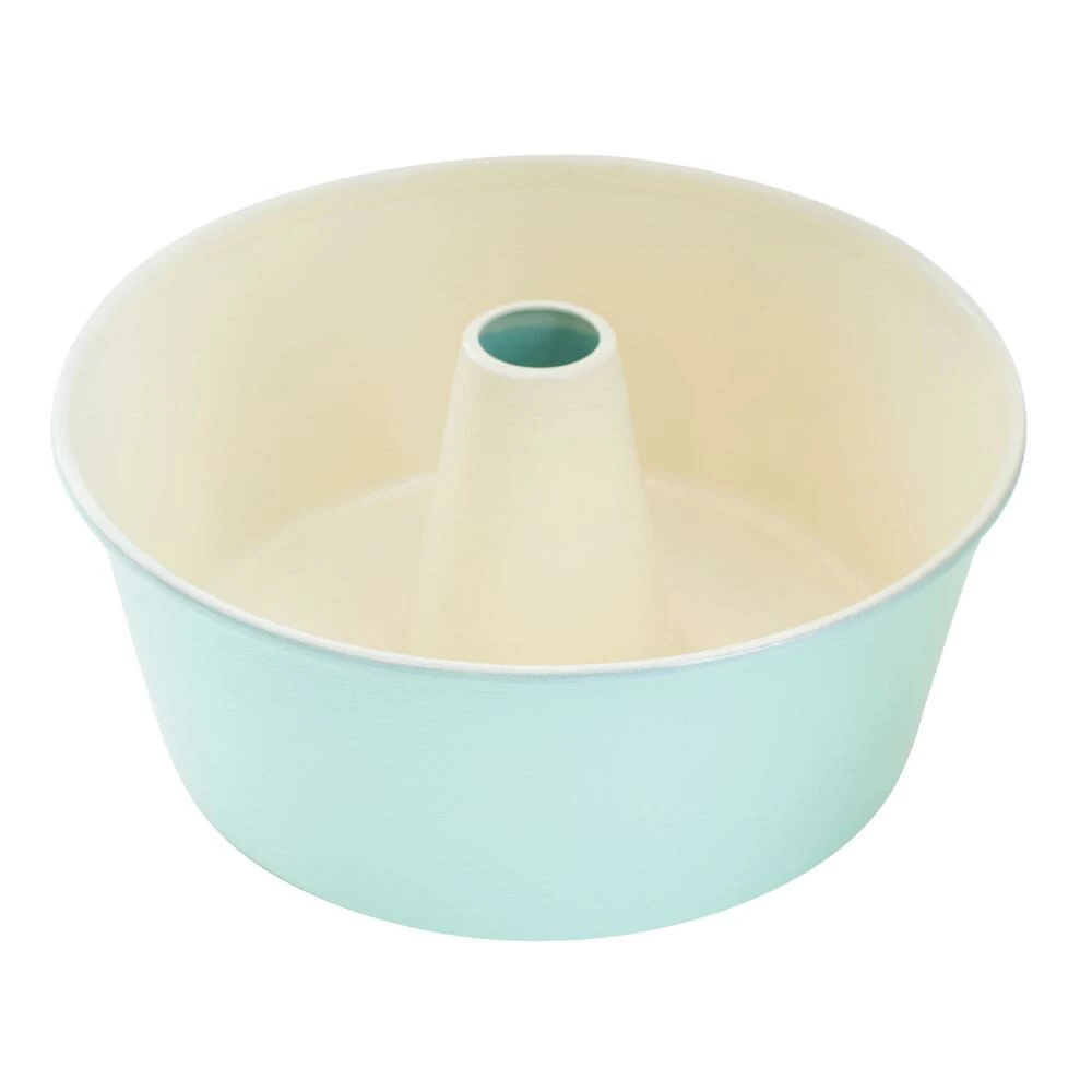 This Nordic Ware angel food cake pan is made of cast aluminum with a nonstick coating, a festive mint exterior and an impressive 16-cup capacity. With even heat distribution for effortless browning and a completely leak-proof design, this lightweight pan is perfect for baking light angel food cakes as well as dense coffee and pound cakes. Family-owned since 1946, Nordic Ware is world famous for their traditional Scandinavian-style bakeware.