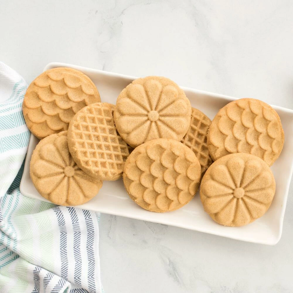 - Chill stamps prior to use; use with cold cookie dough; for best result use with dough made from scratch; if sticking occurs, brush or spray with oil