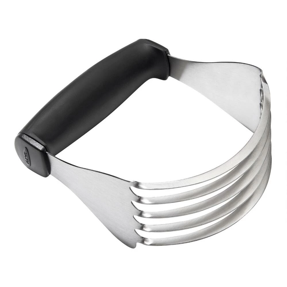 Featuring stainless-steel blades and an easy-grip handle, this essential tool for bakers cuts and blends solid ingredients into bread and pastry doughs. Its durable thin blades quickly reduce butter, margarine and other hard fats into small pieces, mixing them into your flour and sugar with efficiency. Designed by the experts at OXO for lasting comfort, its nonslip handle absorbs pressure as you work and cushions the hand to prevent strain.