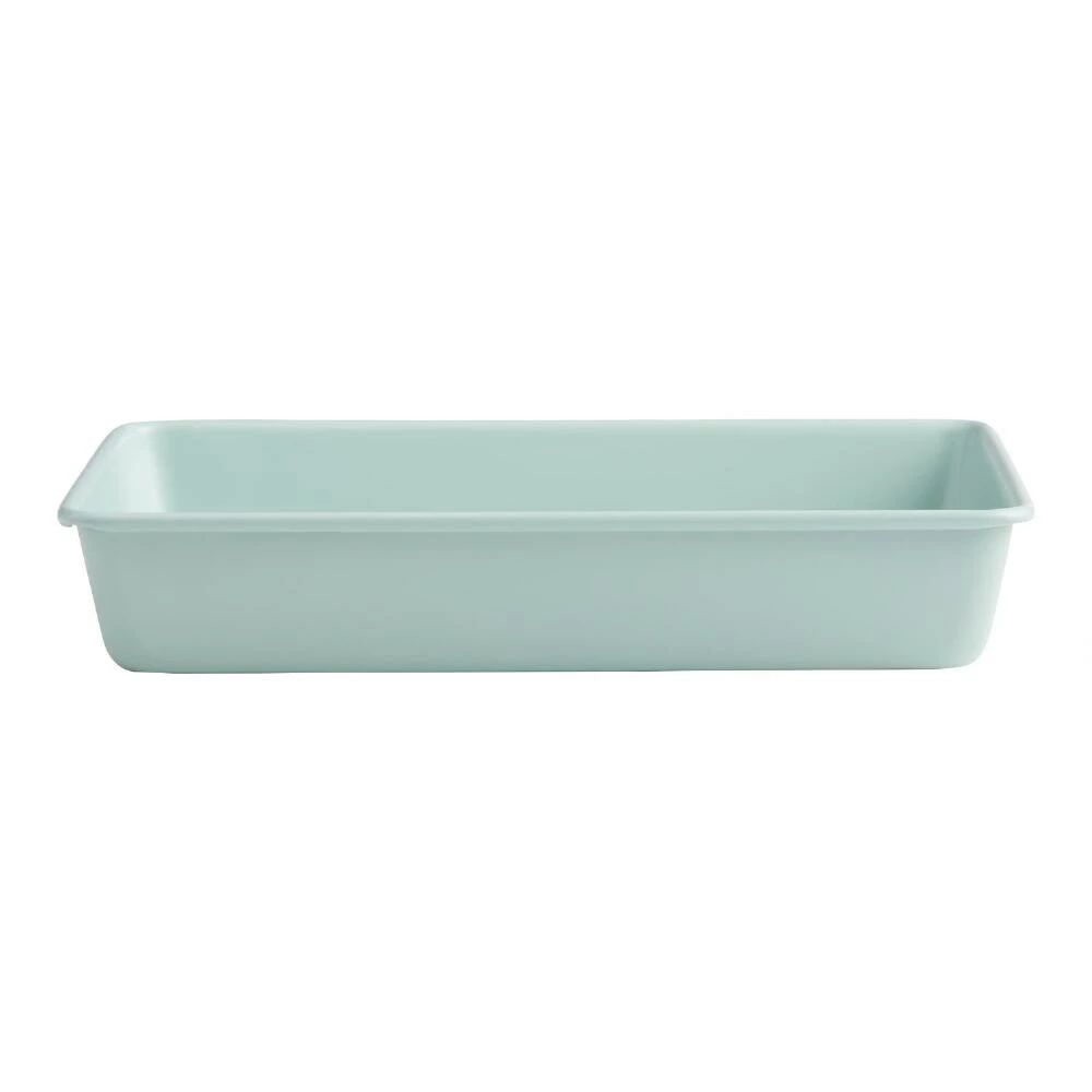 Lovely in on-trend sage green, our rectangular carbon-steel baking pan features a premium ceramic-nonstick coating for an easy release. Its durable low-carbon construction heats quickly and evenly for reliably consistent results. Its versatile size is just right for baking savory casseroles, sweet cobblers, lasagnas, enchiladas and other oven classics.