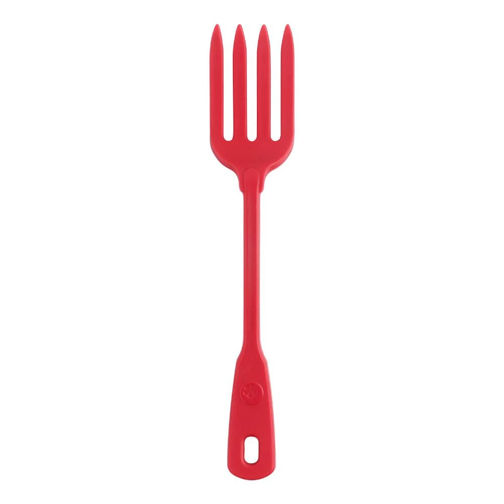 Our red silicone fork is a versatile utensil that’s perfect for a variety of cooking and baking tasks, including whisking, stirring, flipping, lifting, serving and mashing. It’s also heat-resistant for handling hot foods and safe to use on any nonstick surface.