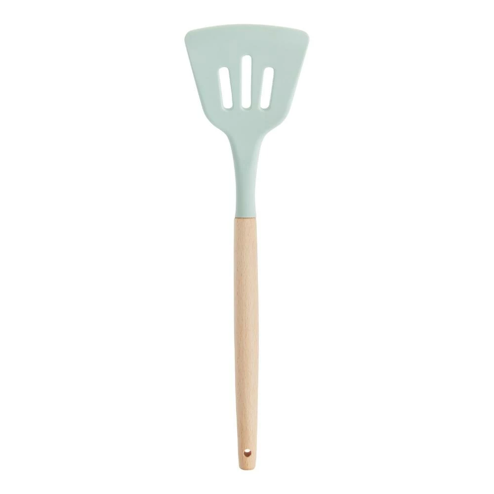 Featuring a heat-resistant silicone head in lovely sage green, our exclusive slotted turner has a comfortable solid wood handle for easy flipping, scooping and serving. Lightweight, versatile and safe for any style of cookware, you’ll reach for this handy utensil time and time again.