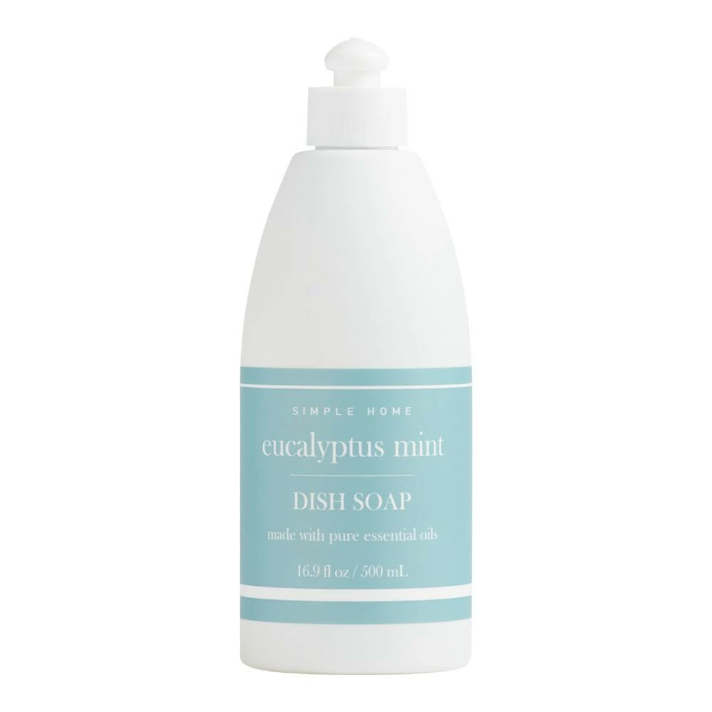 Blending aloe vera, shea butter and the lively fragrance of eucalyptus and mint essential oils, this Simple Home dish soap cleans effectively without any sulfates or parabens. The ideal dishwashing liquid for chefs, its specialty formulation cuts through grease without irritants, its invigorating bouquet neutralizes food odors and its moisturizing ingredients leave the hands feeling supple instead of dried out.