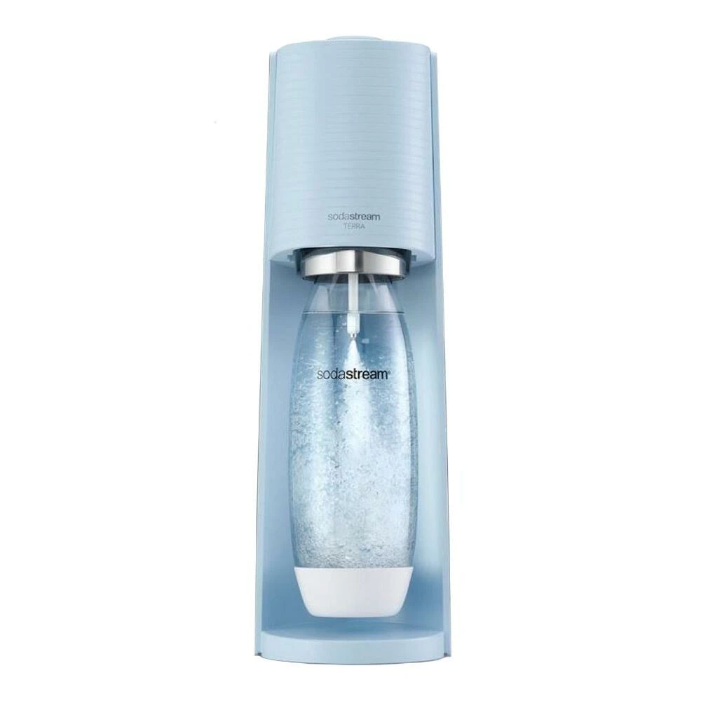 Featuring a sleek modern design in misty blue, the SodaStream® Terra makes flat water into sparkling with the touch of a button. This gift-ready starter kit includes the space-efficient Terra Classic machine, a reusable high-pressure water bottle and an easy-to-install carbonating cylinder with up to 60 bottles’ worth of CO2. Set up the Terra in your kitchen to enjoy fresh fizzy water, make homemade sodas and reduce plastic bottle waste.
