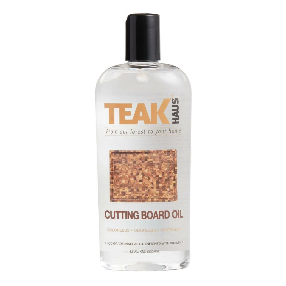 Infused with nourishing vitamins, this food-safe TeakHaus oil seasons and maintains wooden cutting boards, butcher blocks and serving boards. A protective sealant for teak, mango, acacia and other natural woods, this odor-free oil prevents your cooking and serving surfaces from drying out, cracking and losing their good looks. This is the same mineral oil that gives our assortment of TeakHaus cutting boards a gorgeous finish.