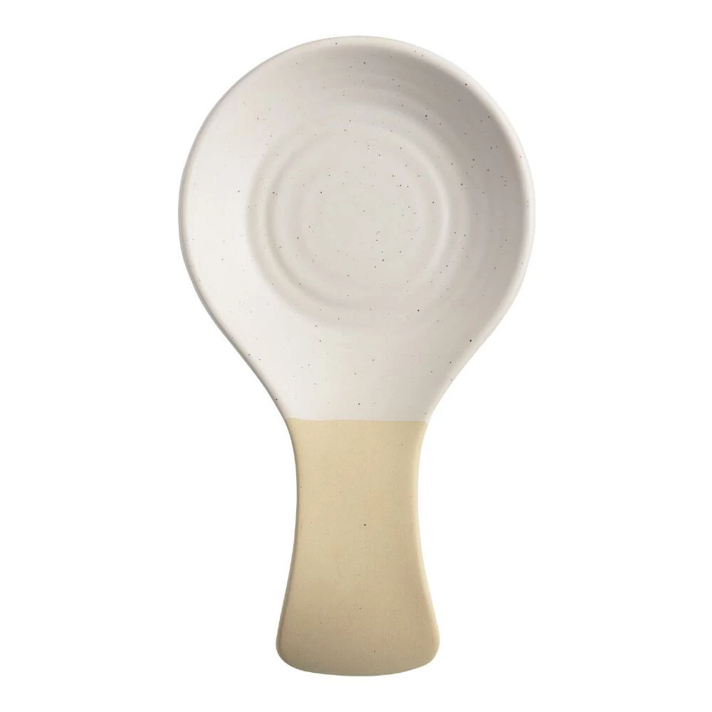 Crafted of ivory stoneware, the Tipton farmhouse spoon rest features a speckled finish and a curved exposed-clay handle that keeps it raised above the counter. Protecting your kitchen from the spill and mess of used cooking utensils, its two-tone design brings the homespun look of artisan pottery to your kitchen.