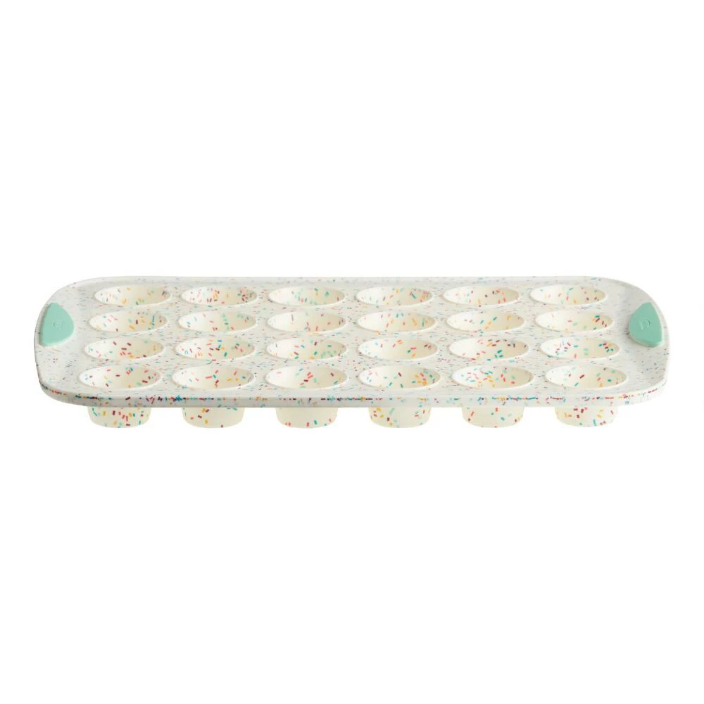 Made of silicone with a colorful confetti design, this Trudeau mini-muffin pan features an integrated steel rim that keeps it firmly structured. Its naturally nonstick silicone interior perfectly browns 24 mini cupcakes or muffins that release easily every time. The stabilizing metal structure of this reliable baking pan prevents it from collapsing in the oven or wobbling on the tabletop.