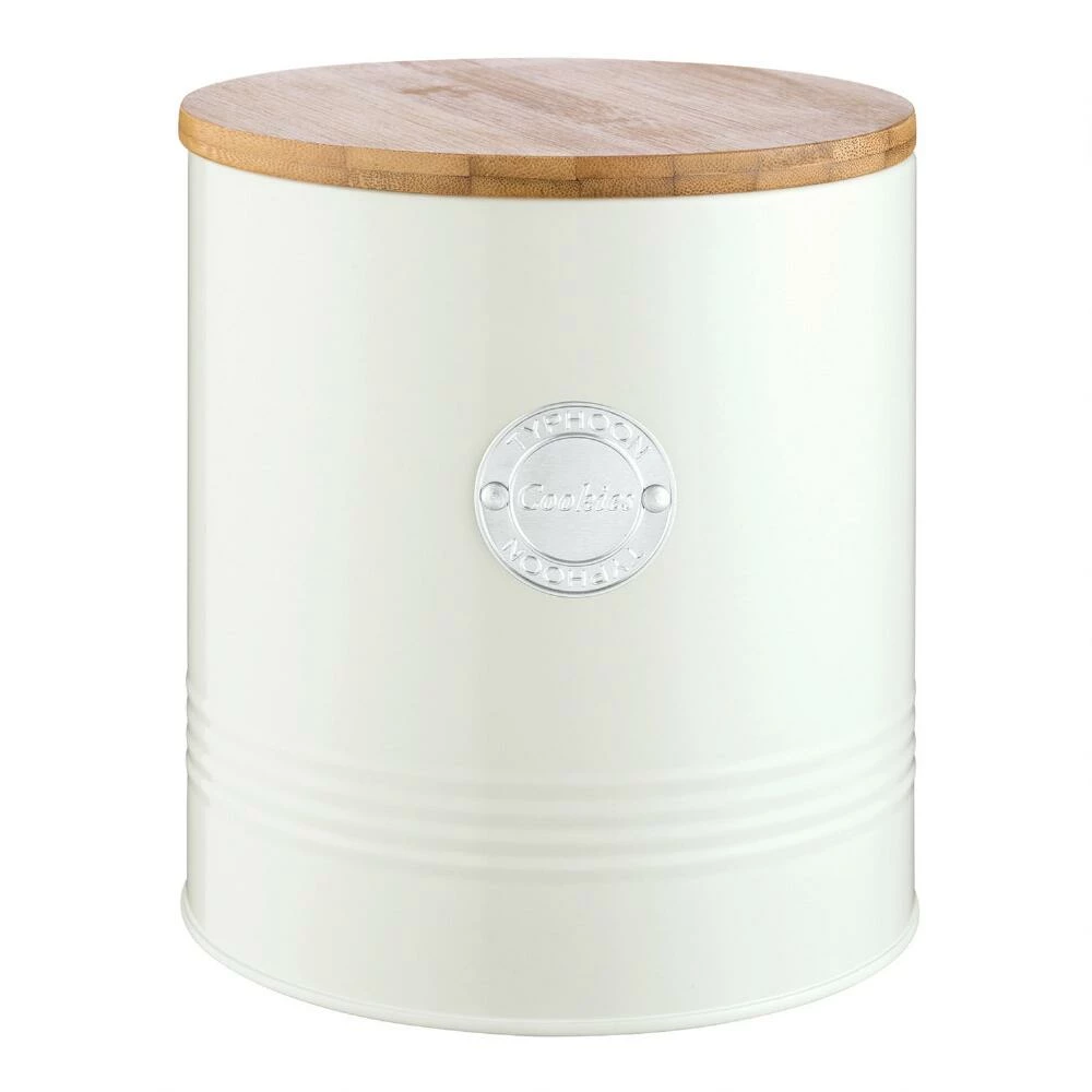 Crafted of carbon steel with a coated finish in your choice of colors, this Typhoon Living cookie jar features a bamboo lid sourced from a sustainable forest. A sophisticated treat container for homemade and store-bought cookies, pastries and baked treats, it seals in freshness with its airtight gasket lid. Known for their high-quality kitchenware since 1994, Typhoon makes attractive and practical essentials with a long-lasting durability.