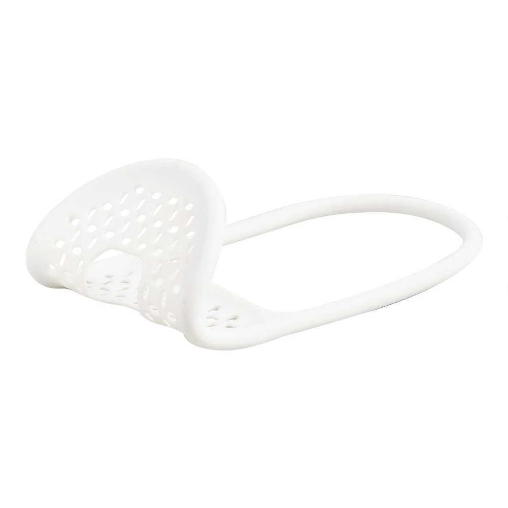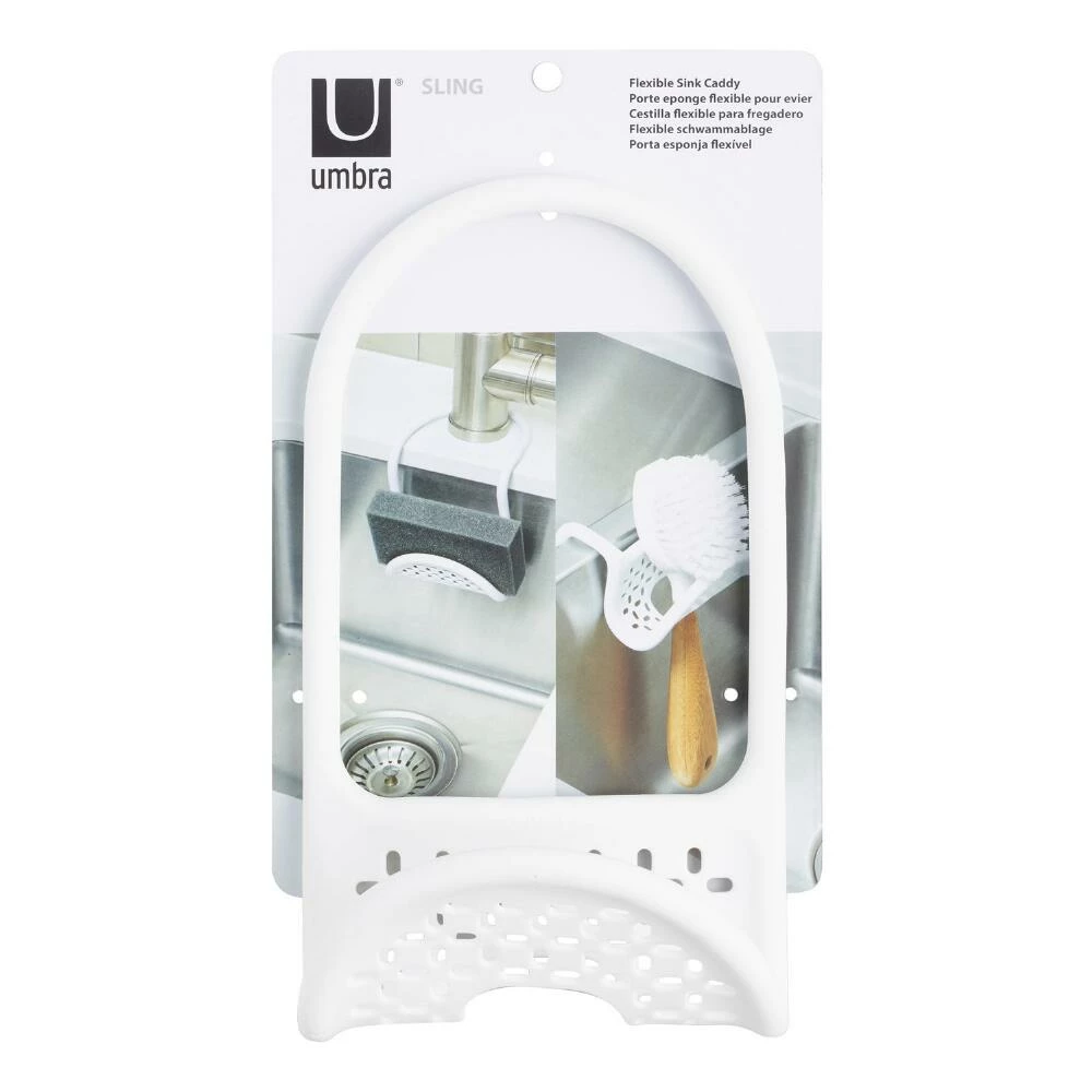Perfect for small sinks, double sinks and more, our white sink caddy features a plastic-coated wire sling that molds to the shape of your faucet neck or sink edge. The perforated base allows your sponge, scrub brush or dishrag to drain, discouraging the moisture buildup that can lead to mold.