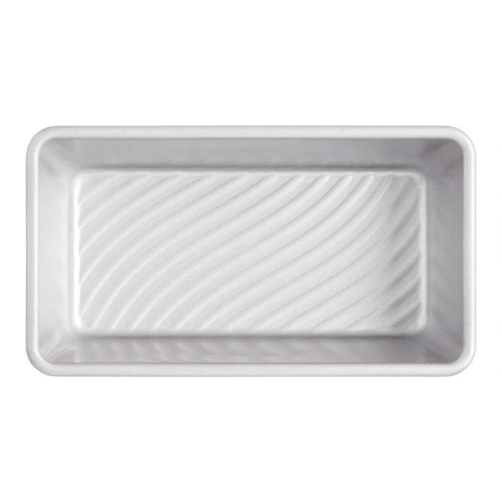 Crafted by family-owned USA Pan® of partially-recycled aluminized steel, this high-quality loaf pan is coated with nonstick silicone for an easy release. Featuring a warp-resistant ridged surface that resembles a waving flag, this unique pan increases airflow for quicker, more even baking and browning. Durable and fast heating, this is the perfect one-pound pan for fresh, homemade loaves of banana, apple, zucchini and other quick breads.