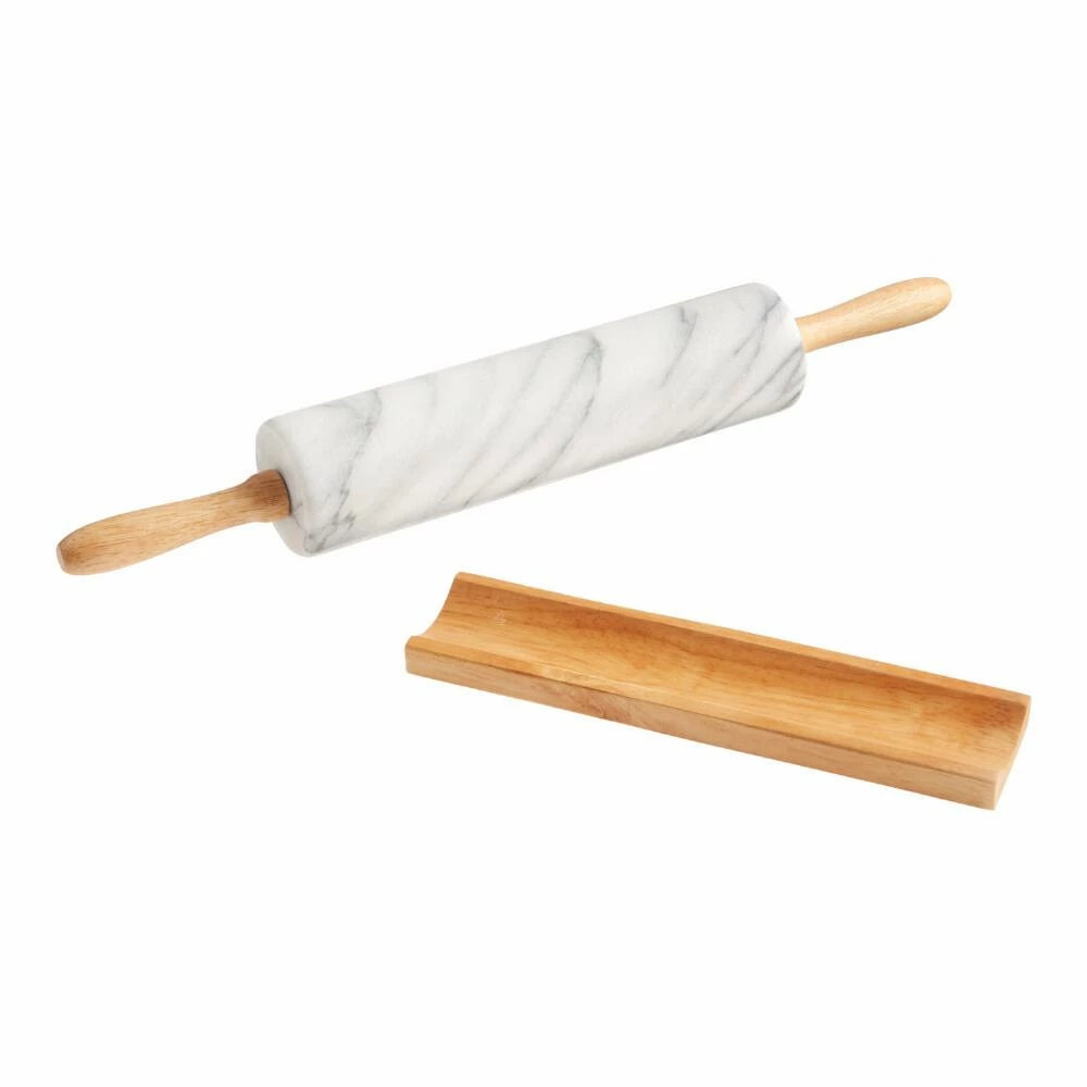 A gorgeous addition to the kitchen, our exclusive rolling pin is crafted of real white marble with ergonomic rubber wood handles. Smooth and properly weighted to roll out even the most resistant doughs, you’ll want to display this essential kitchen tool even when it’s not being used.