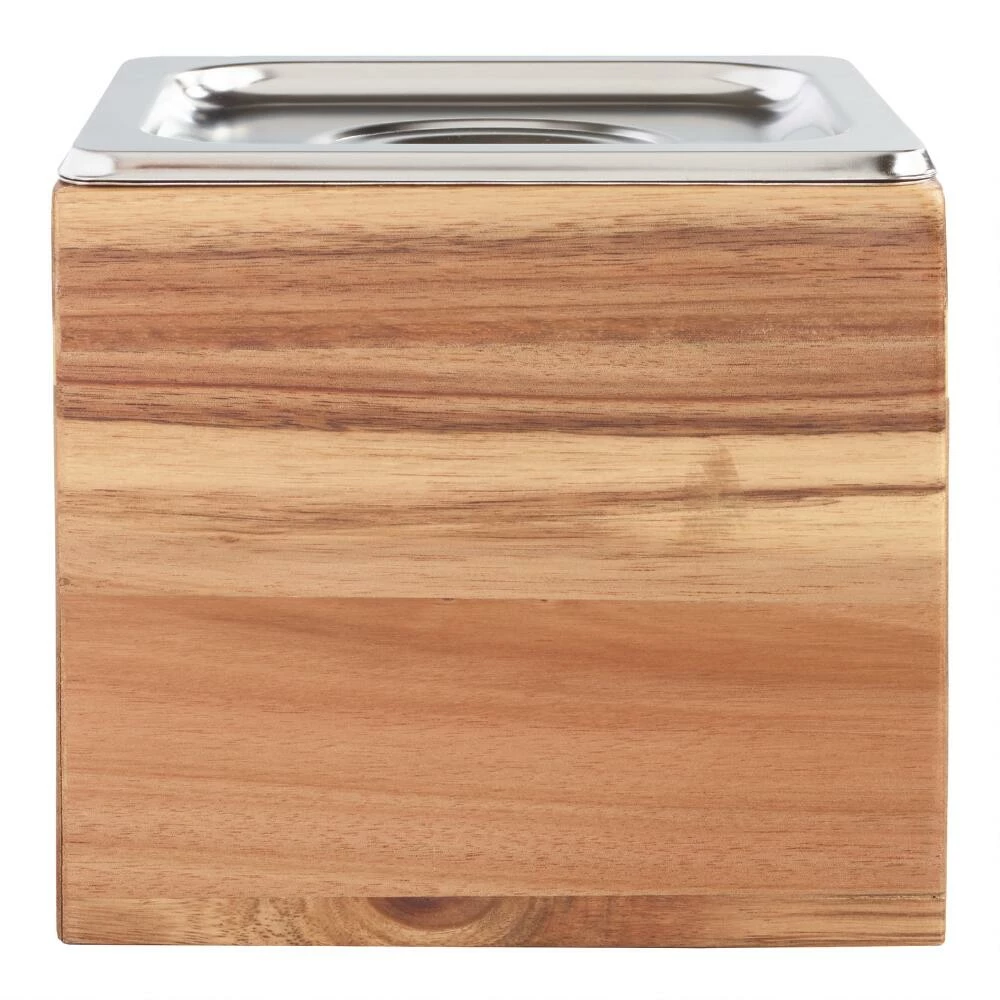 The rustic wood exterior of our exclusive composter complements any kitchen decor and disguises the bin as it collects eggshells, coffee grounds and food scraps. It features a stainless steel interior that won’t harbor odors or stains, eliminating the need for compost bags. This interior is conveniently removable and dishwasher safe.